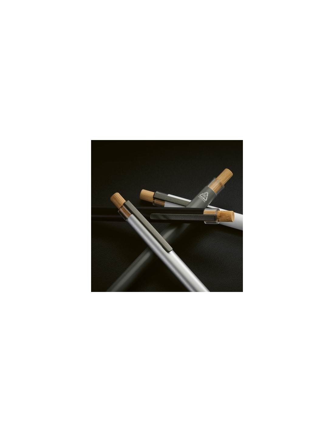 Un bolígrafo ecológico, cuidadosamente diseñado con un cuerpo de aluminio reciclado y completado con elementos de rPET y bambú en la parte superior. Disfrute de 1 km de pintura azul Dokumental®. Se entrega en una caja de papel kraft natural respetuosa con el medio ambiente. Material : Aluminio Reciclado Ink color : Azul Percentage Recycled Material : 88 CO2 Footprint : 0,14 Printing Technique Default : Láser.