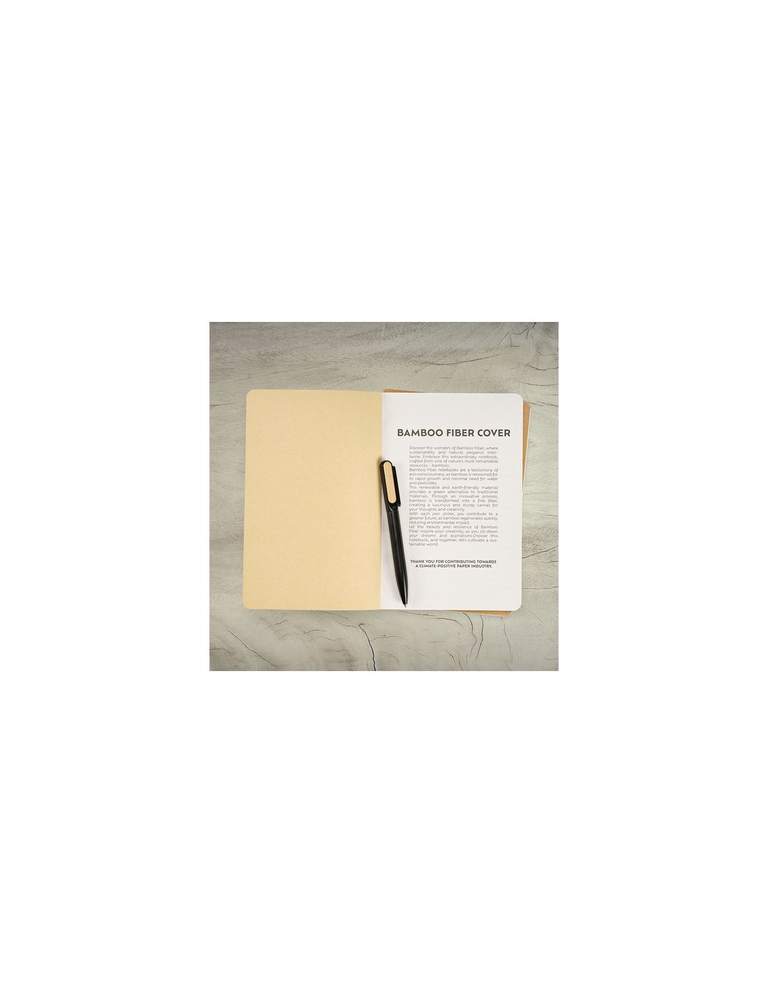 Fabricado en fibra de bambú, nuestro bloc de notas A5 es la síntesis de la elegancia. Sus 196 páginas recicladas, de 70 g/m2, punteadas, esperan su inspiración. La combinación perfecta que promete estilo y practicidad. Material : Material Natural Reciclado Percentage Recycled Material : 95,9 CO2 Footprint : 0,63 Printing Technique Default : Serigrafía.