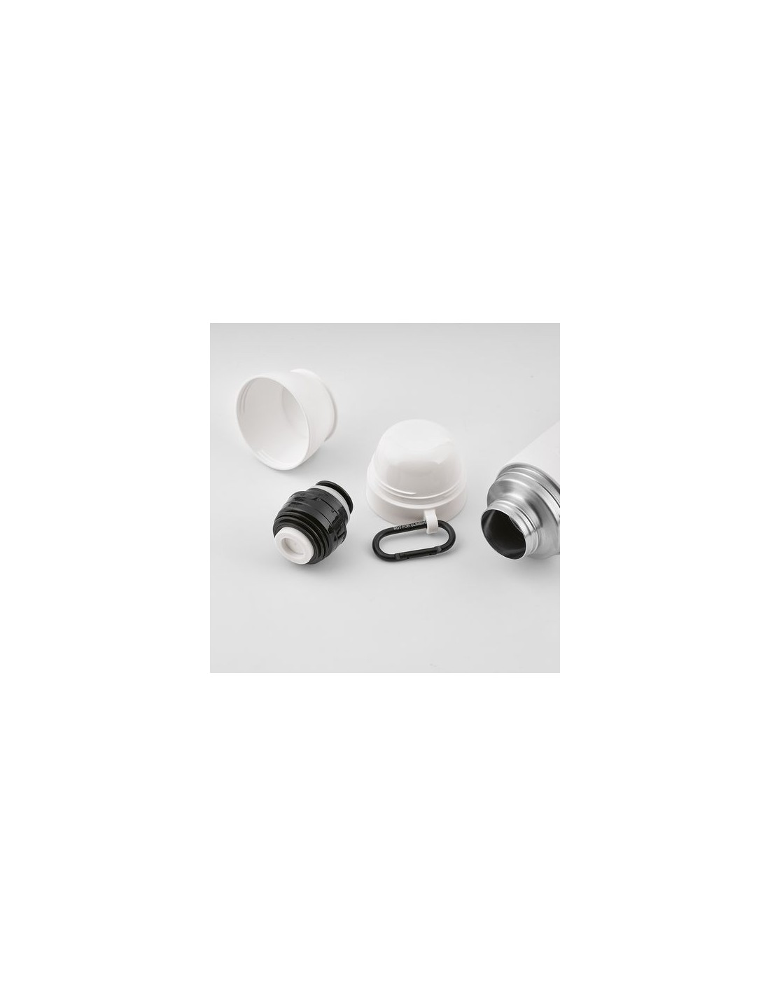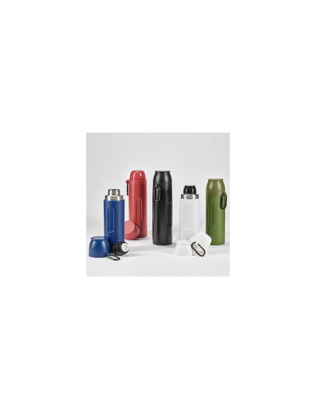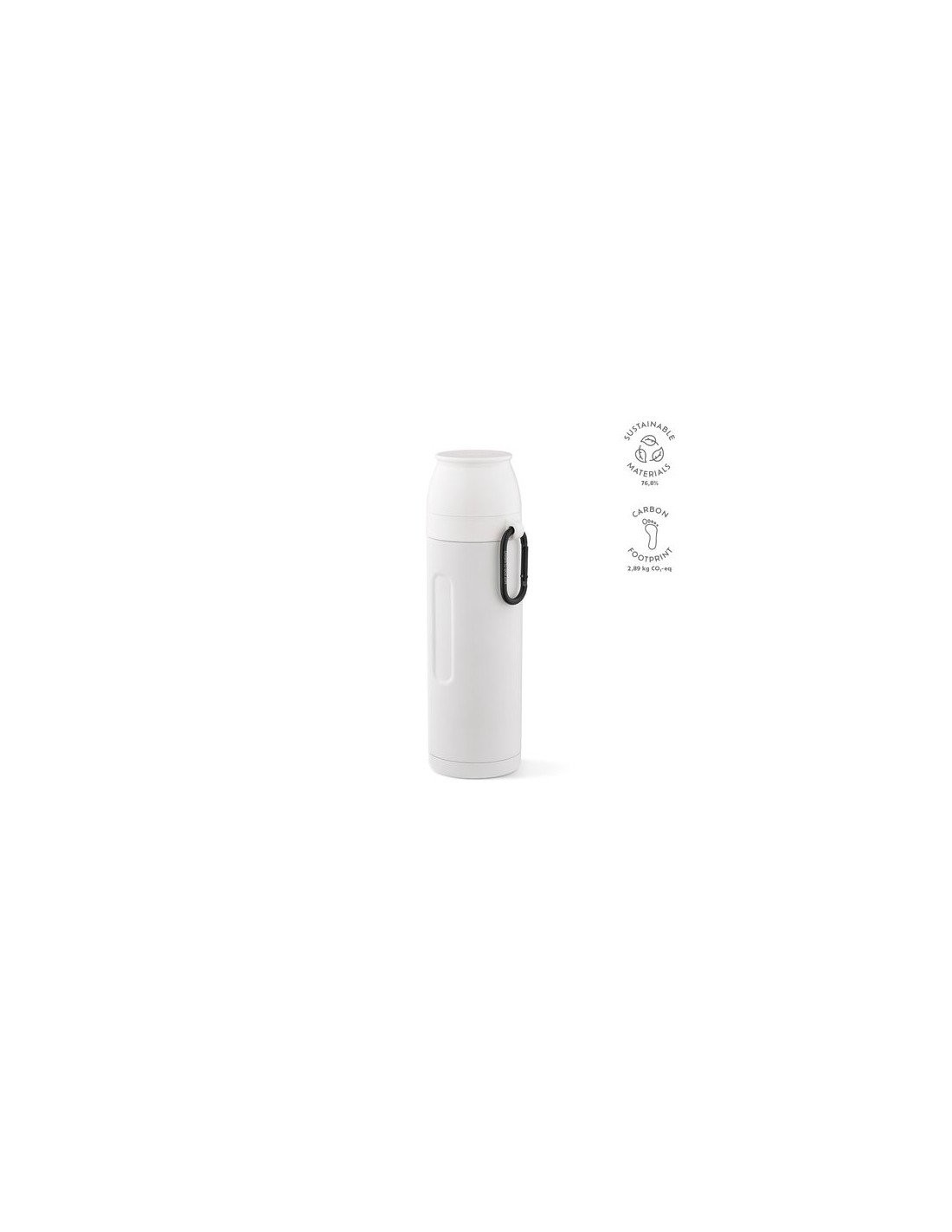 Este termo de 810 ml (750 ml de líquido) está fabricado en acero inoxidable reciclado, y cuenta con un mosquetón para facilitar su transporte. El aislamiento de doble pared mantiene las bebidas calientes o frías. Haga de cada sorbo un placer ecológico, con 2 tazas (19cl y 22cl) y cuerpo ergonómico. Material : Acero inoxidable reciclado Percentage Recycled Material : 75,1 CO2 Footprint : 1,88 Printing Technique Default : Serigrafía.