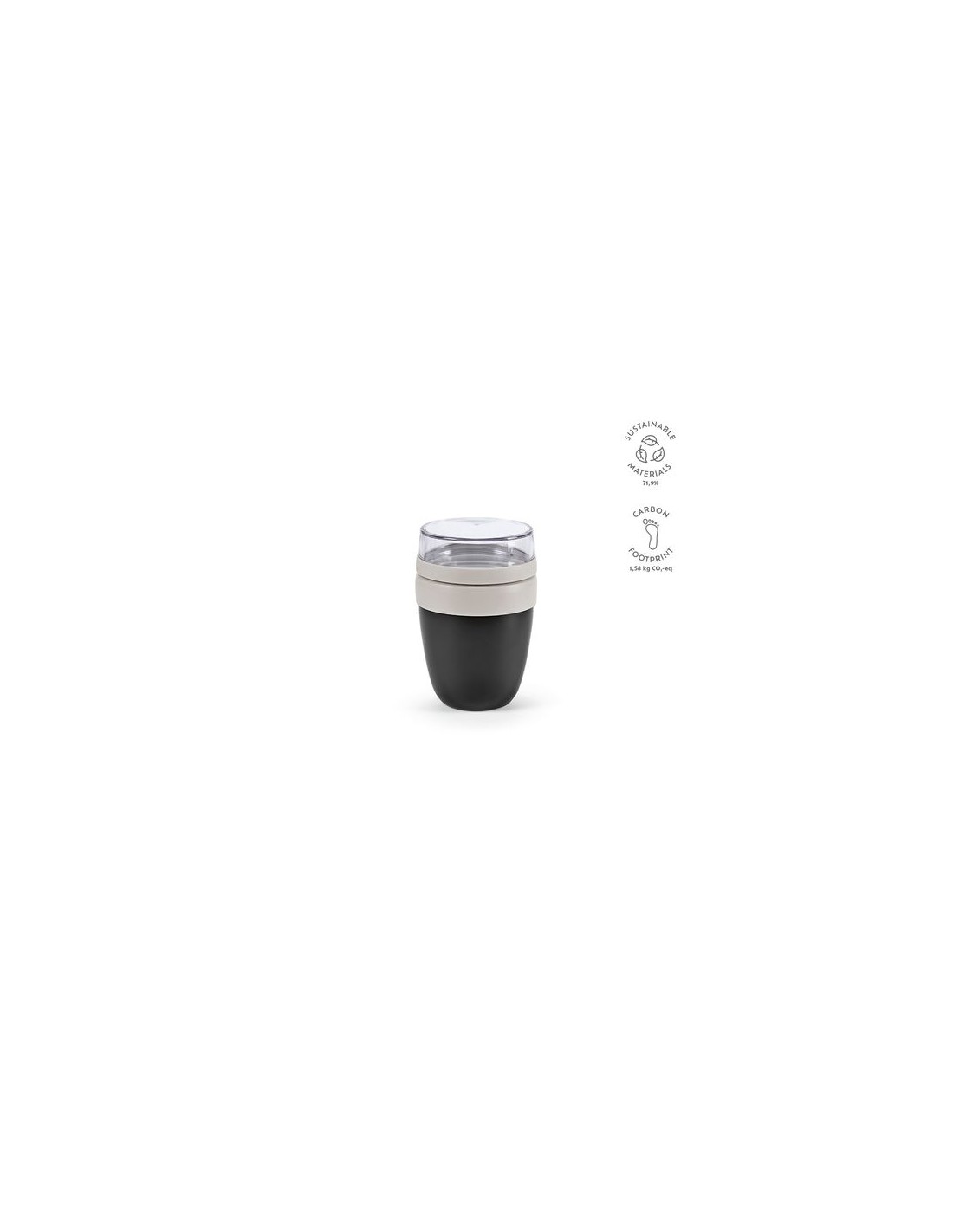 Este tarro de comida cuenta con 2 compartimentos: el inferior de 530 ml (430 ml netos) en acero inoxidable reciclado y la tapa de plástico de 230 ml (110 ml netos). De forma ovalada y doble pared, perfecto para sopas y picatostes. Tapa antigoteo que permite llevarlo a cualquier lugar. Material : Acero inoxidable reciclado Percentage Recycled Material : 59,1 CO2 Footprint : 1,66 Printing Technique Default : Serigrafía.