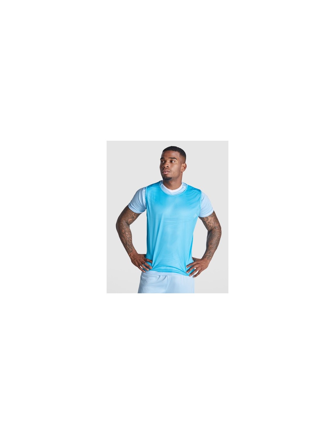 Peto deportivo transpirable unisex.· Vivo en el mismo tejido en sisas y cuello. · Doble pespunte en el bajo. Composition : 100% poliéster mesh, 90 g/m²