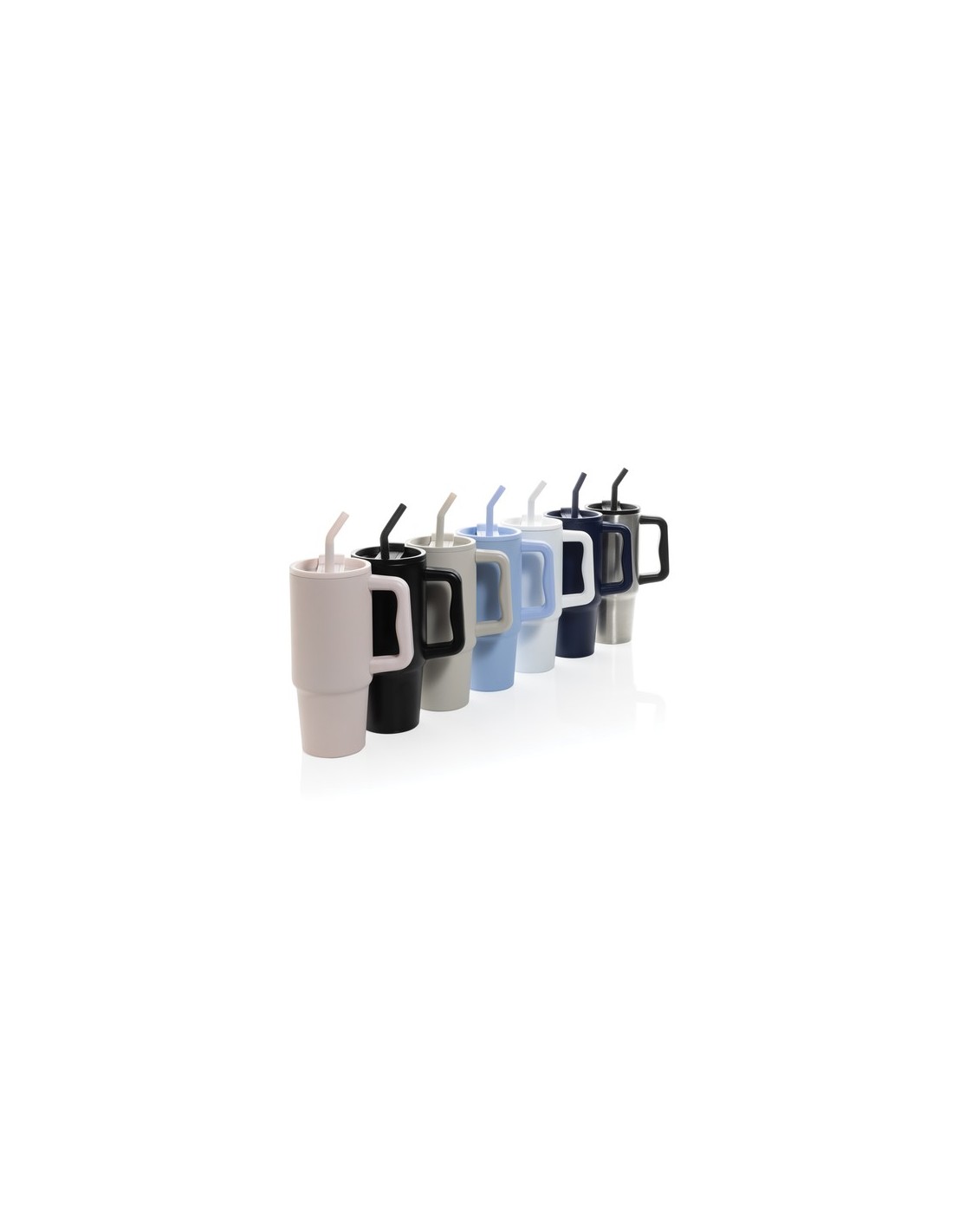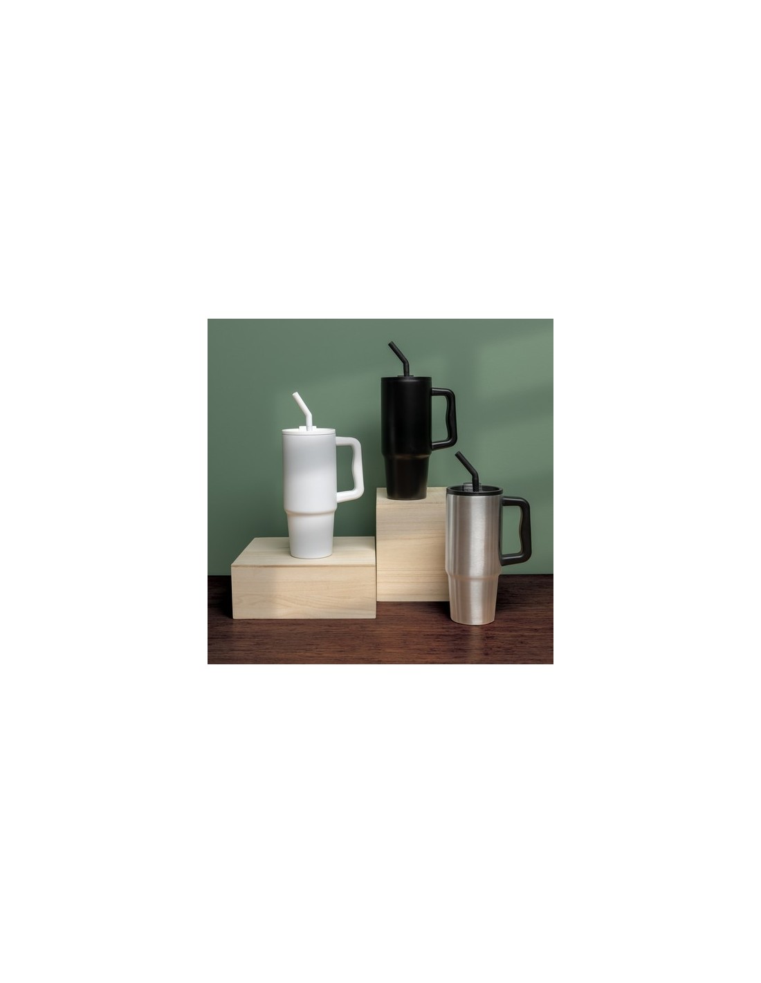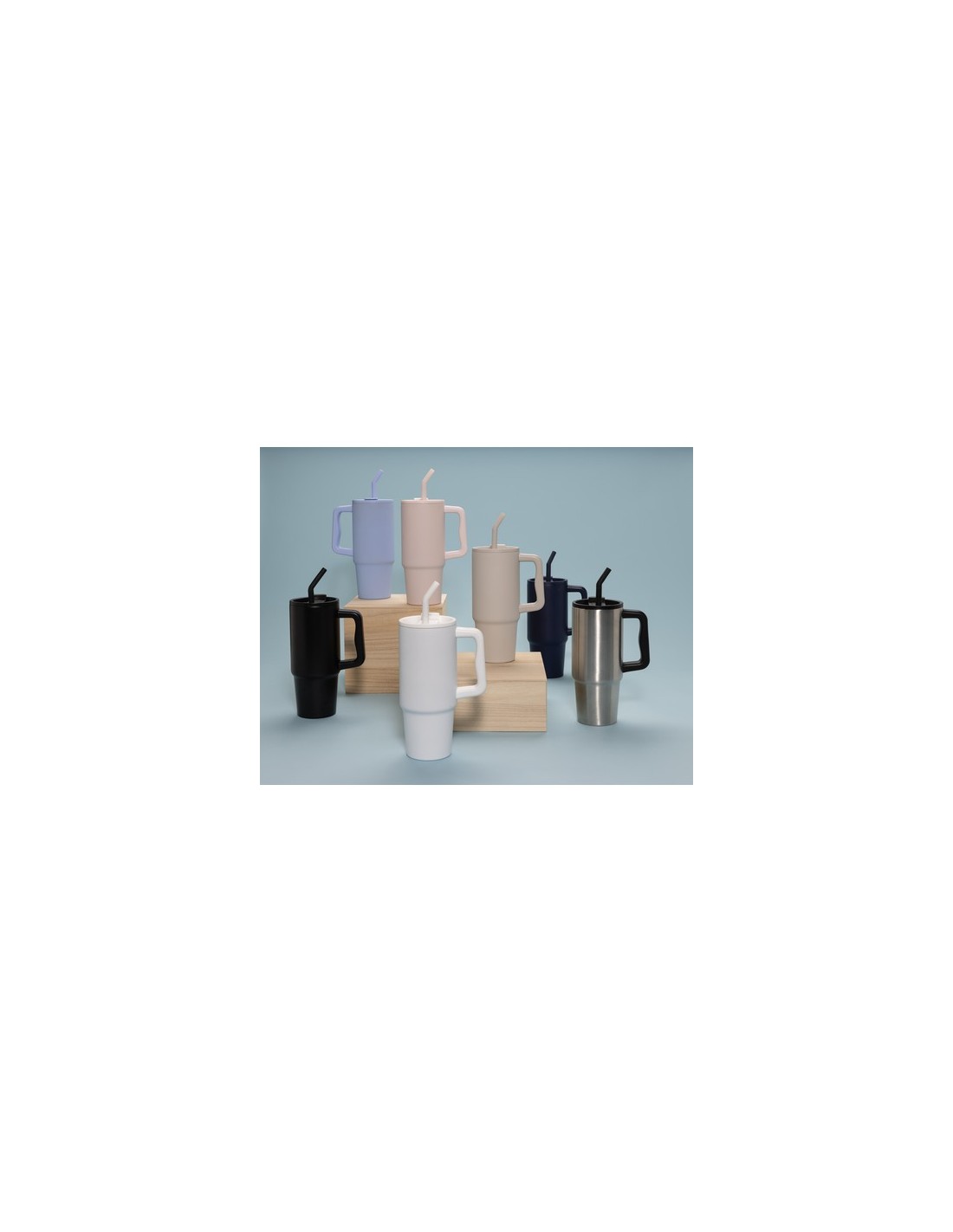 Vaso espacioso de tamaño generoso pero fácilmente transportable. Ni demasiado grande ni demasiado pequeño. Su cómoda asa y su fina base lo hacen perfecto para la mayoría de los portavasos, lo que garantiza que se mantenga fresco ya sea que esté soportando un largo día de reuniones, conquistando una clase de remo o emprendiendo un viaje fuera de la ciudad. Elaborado con acero inoxidable reciclado duradero de 900 ml. El vaso está a la altura del desafío de la hidratación. Doble pared con aislamiento al vacío, completo con una tapa a prueba de derrames, pajita y una punta de pajita de silicona. Adecuado tanto para bebidas frías como calientes. La tapa de rosca tiene una doble función: ofrece una cómoda boquilla para beber o la opción de utilizar una pajita. Recomendamos lavar a mano para un cuidado óptimo. Fabricado con RCS que garantiza una cadena de suministro de materiales reciclados completamente certificada. Contenido reciclado total: 70% basado en el peso total. Libre de BPA Material : Acero inoxidable reciclado, PP Recycled Content Percent : 70 Sin materiales Bisphenol A, Conforme directiva seguridad Alimentos 1935/2004/EC & 2020/1245, Restringido en el Convenio de Estocolmo, Reglamento PoP UE/Reino Unido, Reglamento REACH (CE) nº 1907/2006, flúor total menos de 50 ppm Packaging : Caja de regalo All print codes : Pad Print Drinkware,Laser Engraving 3,Laser Round 360 - Print code default : Tampografía - parte frontal/alta del artículo - 40 x 80 mm - max color : 5 Social Audits : BSCI Total CO2 emissions : 2,55.
