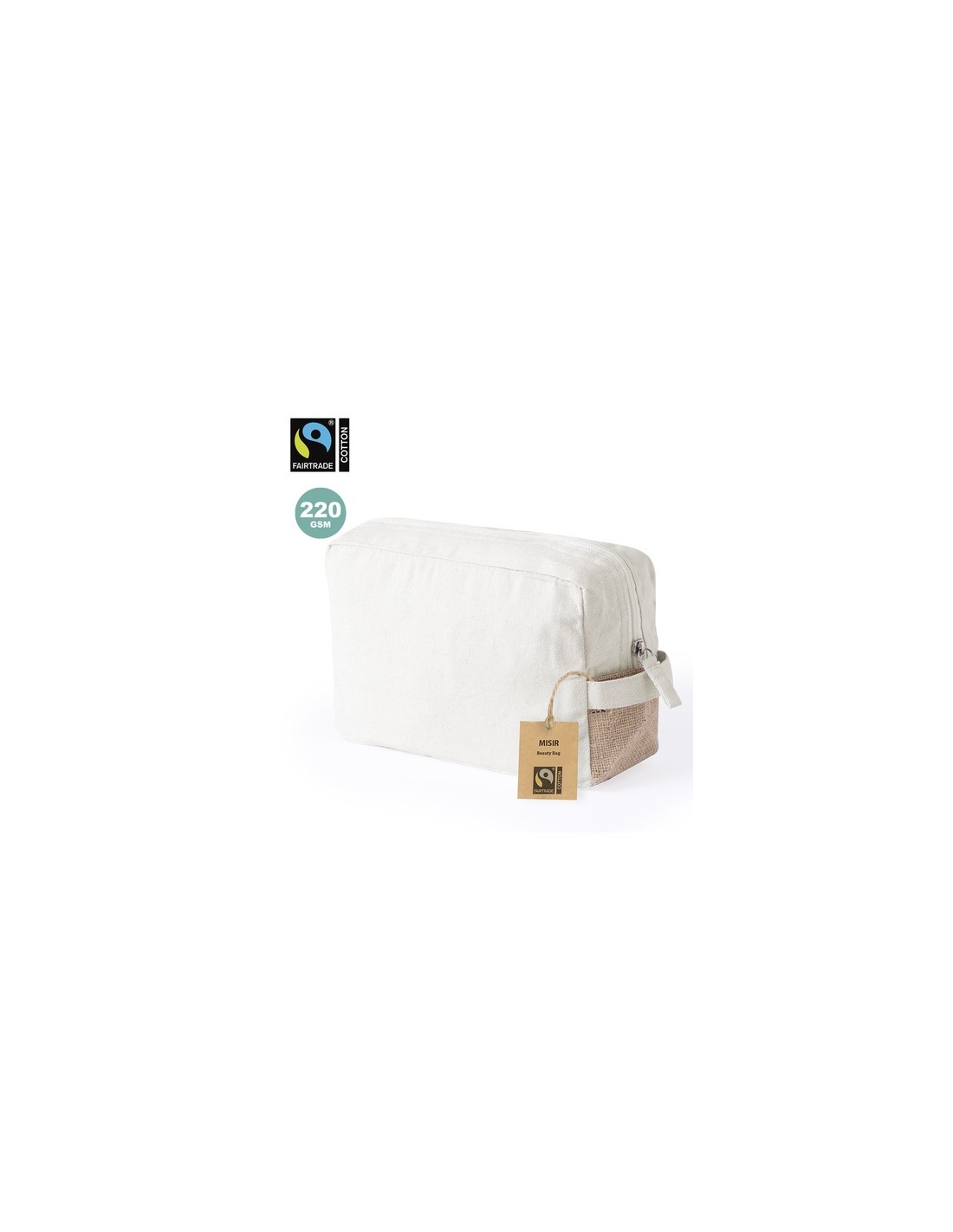 Neceser Fairtrade de línea nature, fabricado en algodón 100%. Compartimento principal con cierre de cremallera y tirador a juego, con laterales y base reforzados en yute. En elegante tono natural. Incluida etiqueta Fairtrade y etiqueta con logotipo en cartón reciclado.Con certificación Fairtrade (Comercio Justo), un sistema comercial solidario y alternativo al convencional que persigue el desarrollo de los pueblos y la lucha contra la pobreza. Composition : Yute Laminado/ Algodón.