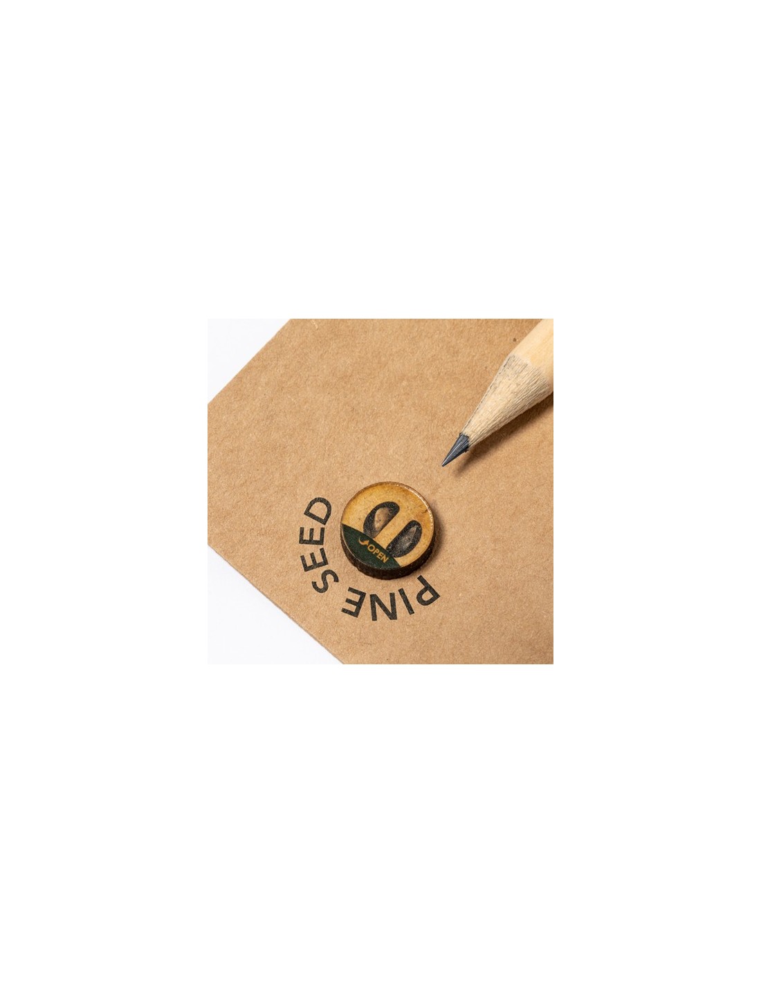 Práctico lápiz con semillas cilíndrico, fabricado en suave madera natural Presentado en un estuche de cartón reciclado que incluye una cápsula de semillas de pino. El cartón reciclado proviene del reaprovechamiento de excedente de fabricaciones y reciclaje de papel en el final de su vida útil, convirtiéndose en un lienzo ecológico y sostenible. Semillas de Pino Incluidas Composition : Madera.