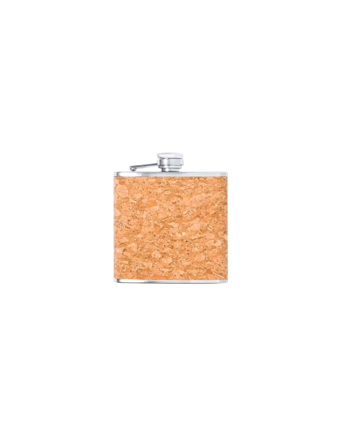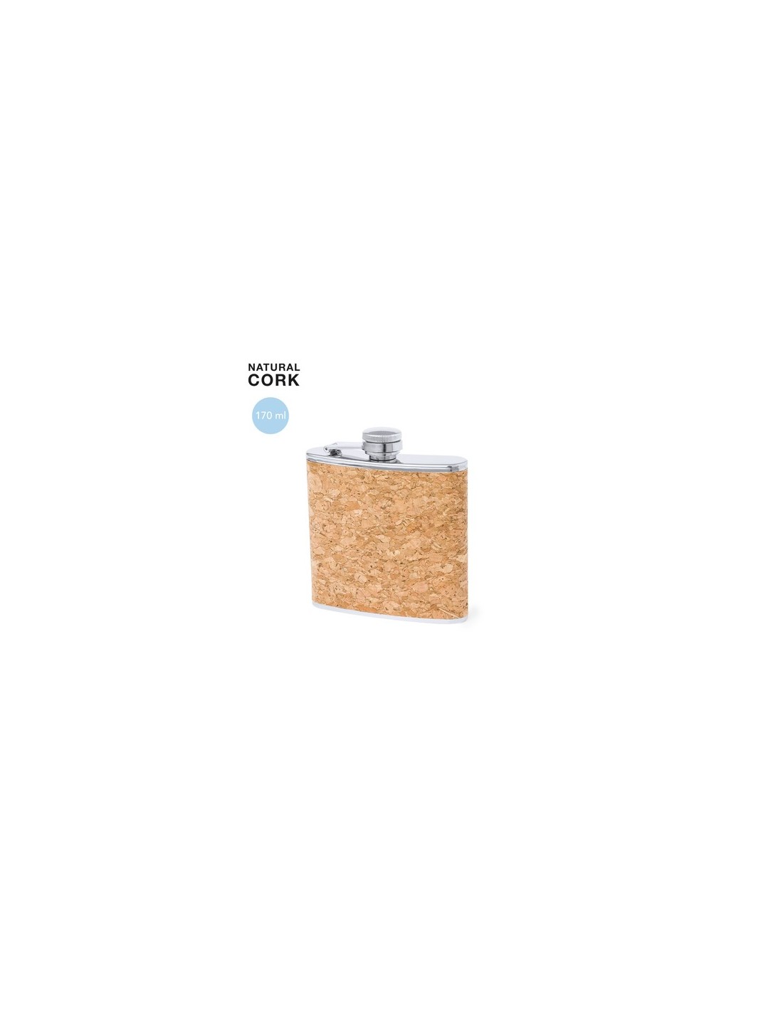 Petaca de línea nature y 170 ml de capacidad. Exterior en corcho natural, con cuerpo de acero inox y tapón de seguridad a rosca. De diseño ergonómico para guardar cómodamente en el bolsillo. Presentada en caja individual de diseño eco en cartón kraft. 170 ml Composition : Corcho/ Acero Inox.