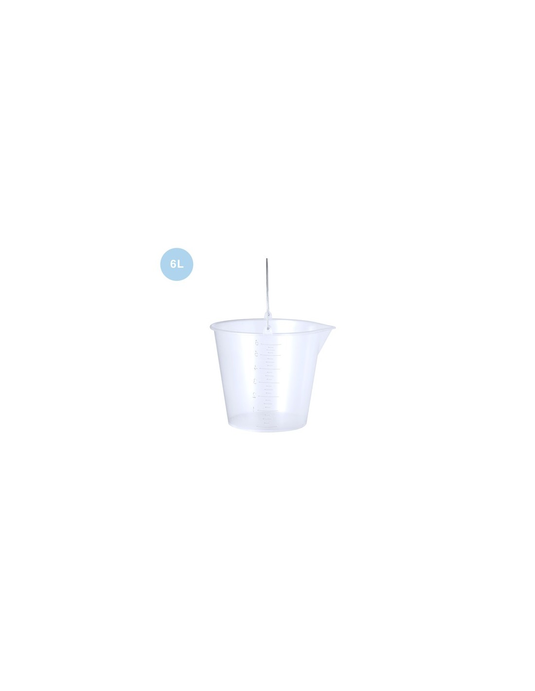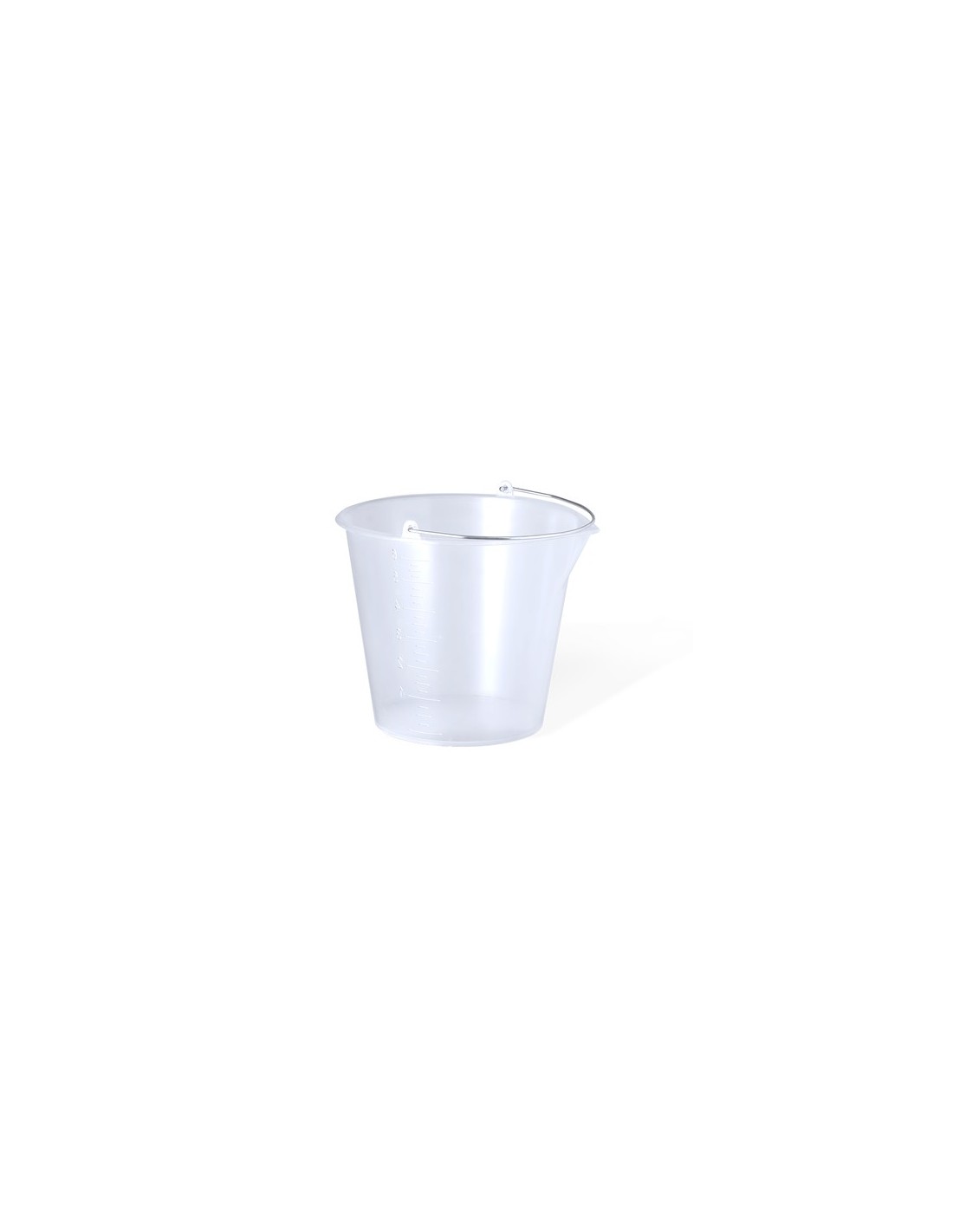 Cubo de 6L fabricado en resistente PP transparente. Con asa metálica y medidor lateral en ml para una rápida y fácil visualización. De perfil redondeado y con vertedor para evitar derrames, además de una amplia zona de marcaje. 6 L Composition : PP.