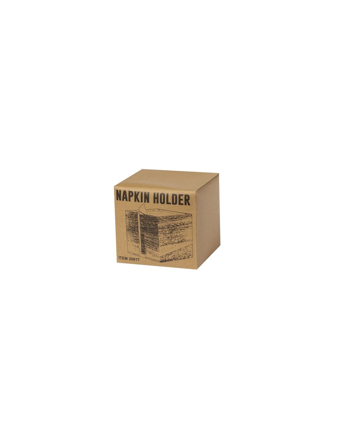 Práctico servilletero fabricado en madera. De diseño industrial, fabricado en suave madera natural con ranura en un lateral para poder coger las servillas con facilidad. Presentado en caja de diseño kraft. Composition : Madera.