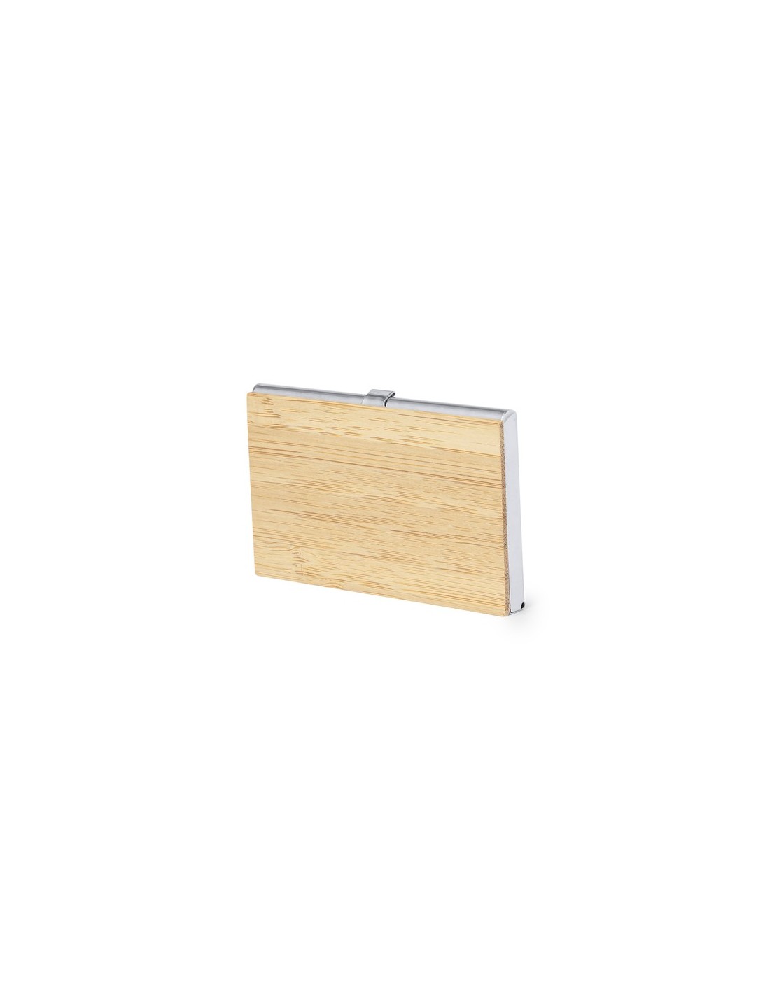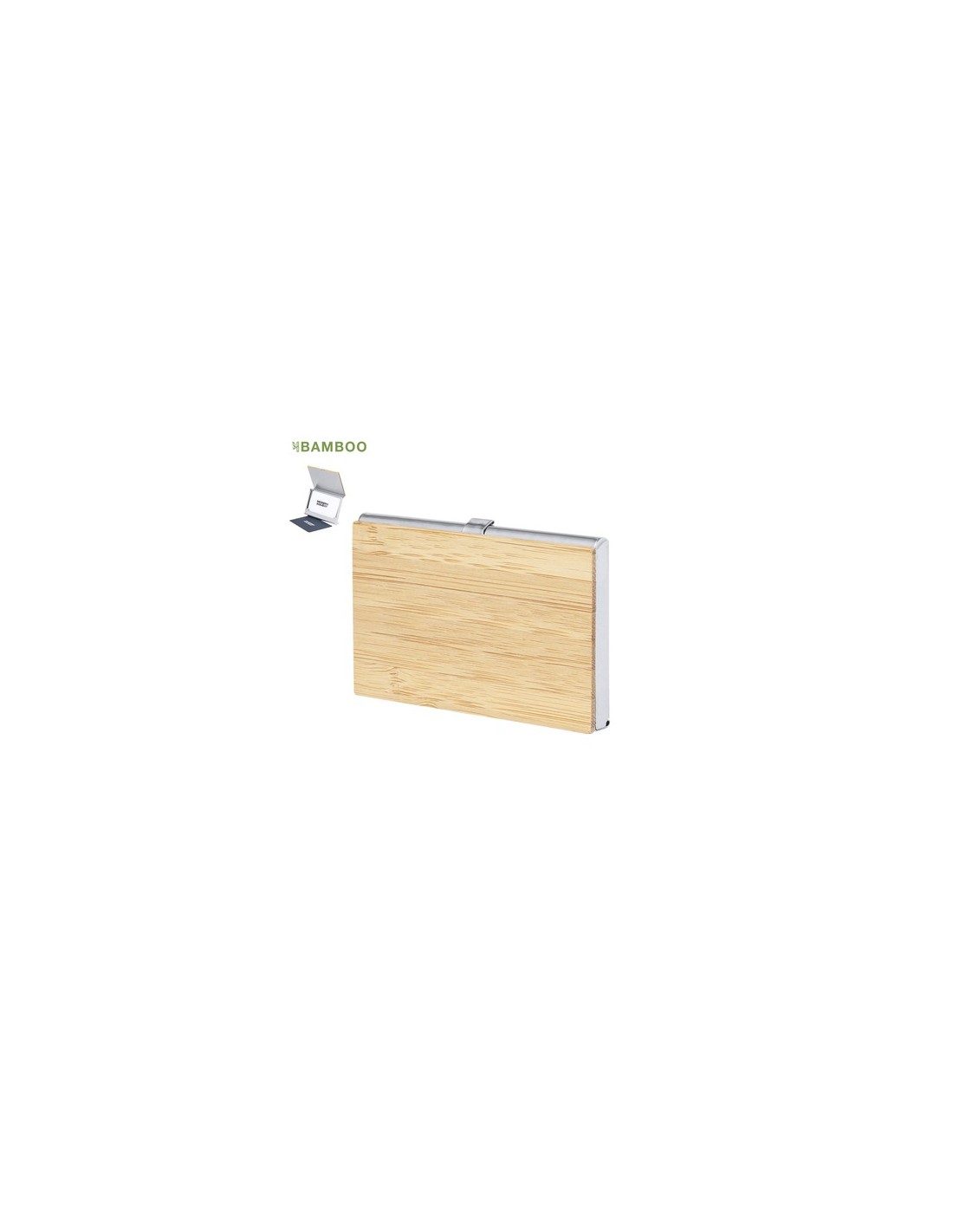 Elegante tarjetero fabricado en suave bambú, con tapas duras y cierre de presión. Destaca el detalle de bambú en la parte frontal y cuenta con un compartimento interior para almacenar tarjetas. Presentado en una bolsa individual de papel reciclado.Materiales como el bambú fomentan la utilización de materias primas naturales, reduciendo las emisiones contaminantes. Proviene de una planta de gran resistencia y versatilidad, con crecimiento y regeneración rápidos, siendo una excelente alternativa al uso de madera tradicional. 1 Compartimento Composition : Metal/ Bambú.