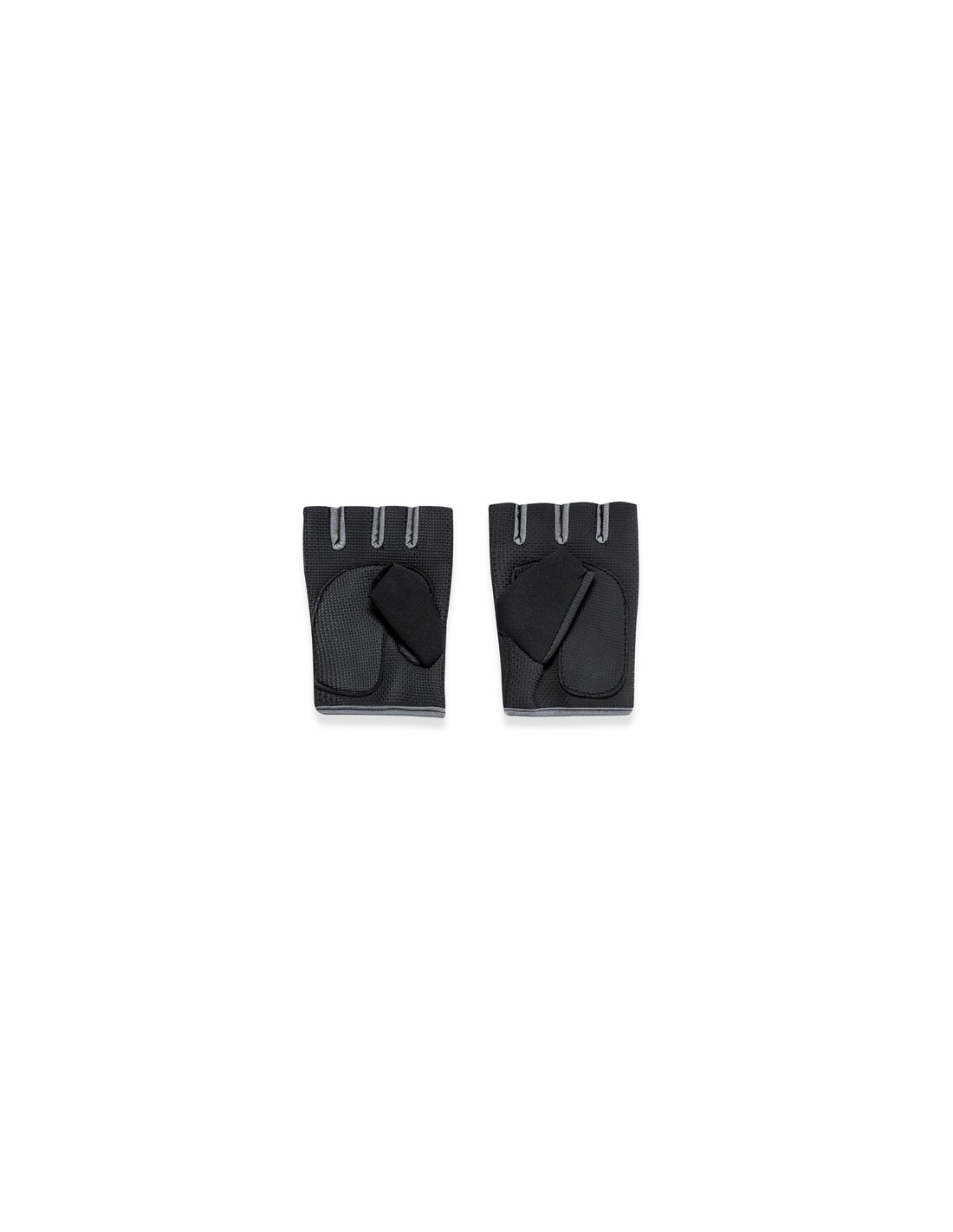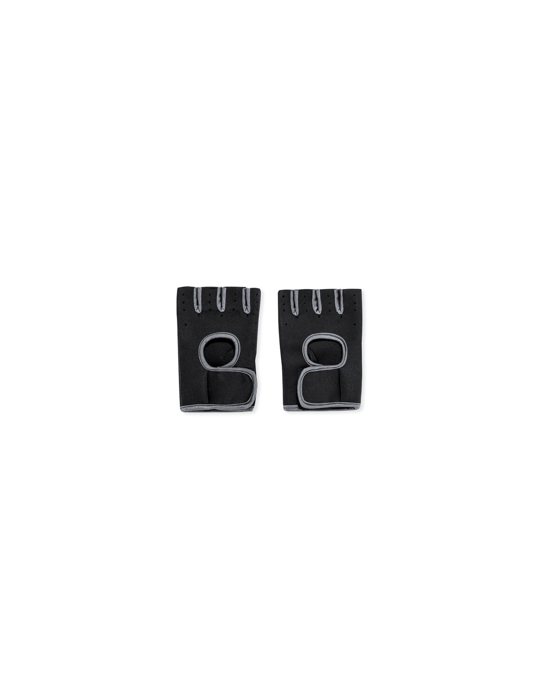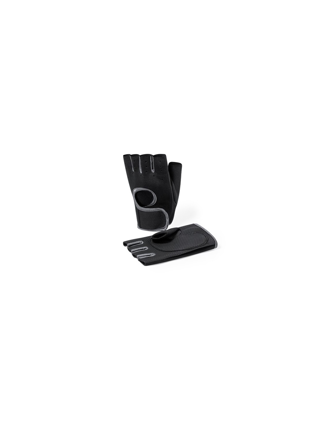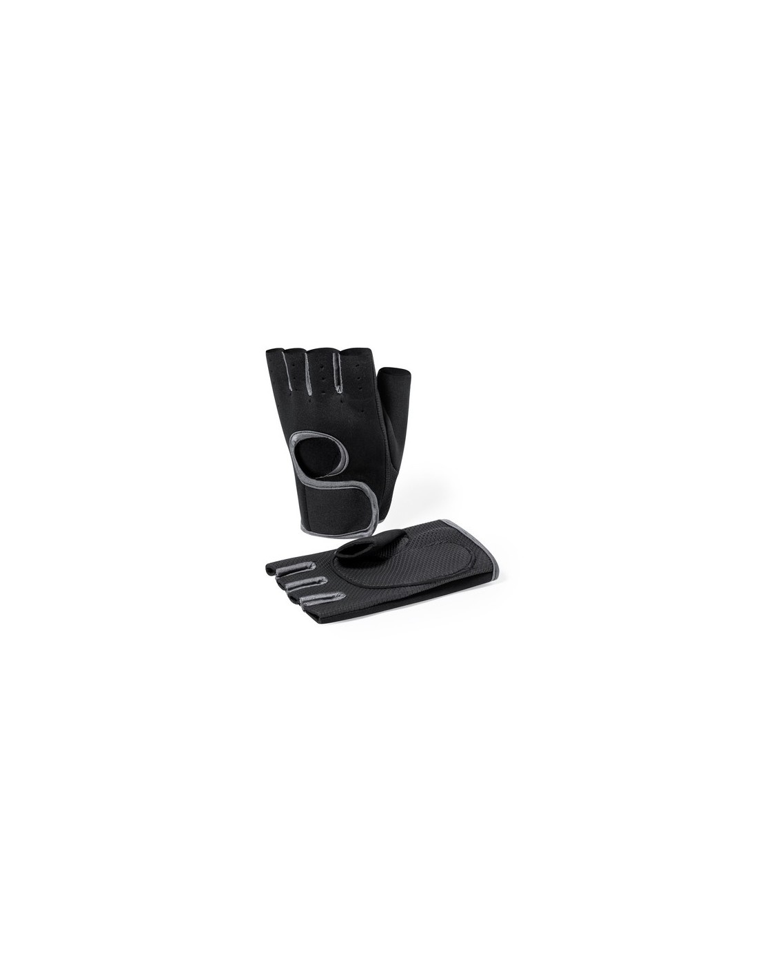 Guantes deportivos fabricados en suave poliéster y licra de neopreno, cuya combinación de tejidos crea una segunda piel que se adapta a la mano. cuentan con un cierre en la muñeca mediante velcro. Estos guantes son cómodos para cualquier disciplina gracias a su alta transpirabilidad, que se logra mediante el diseño de dedos al aire y los disipadores de calor en la parte superior, que además presentan un acabado rugoso para un óptimo agarre. Disponibles en color negro y con costuras en gris, en tallas S-M y L-XL. Presentados en una bolsa reciclada. Composition : Soft Shell.