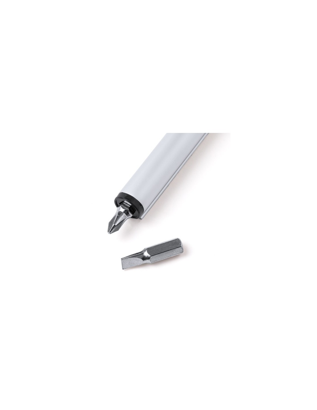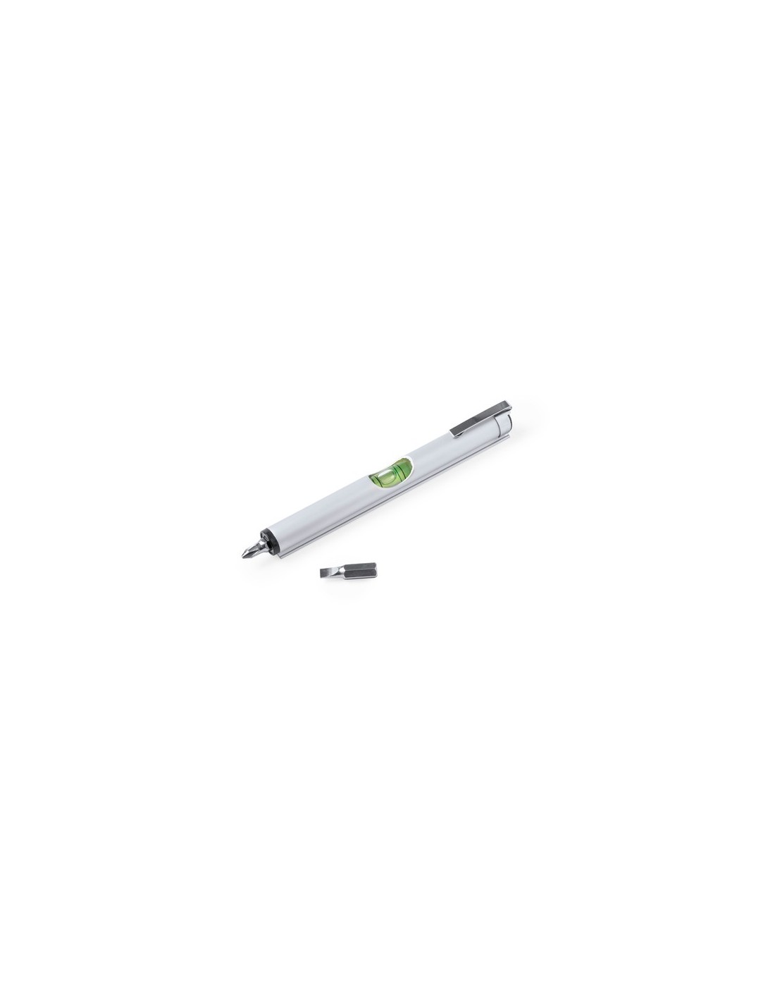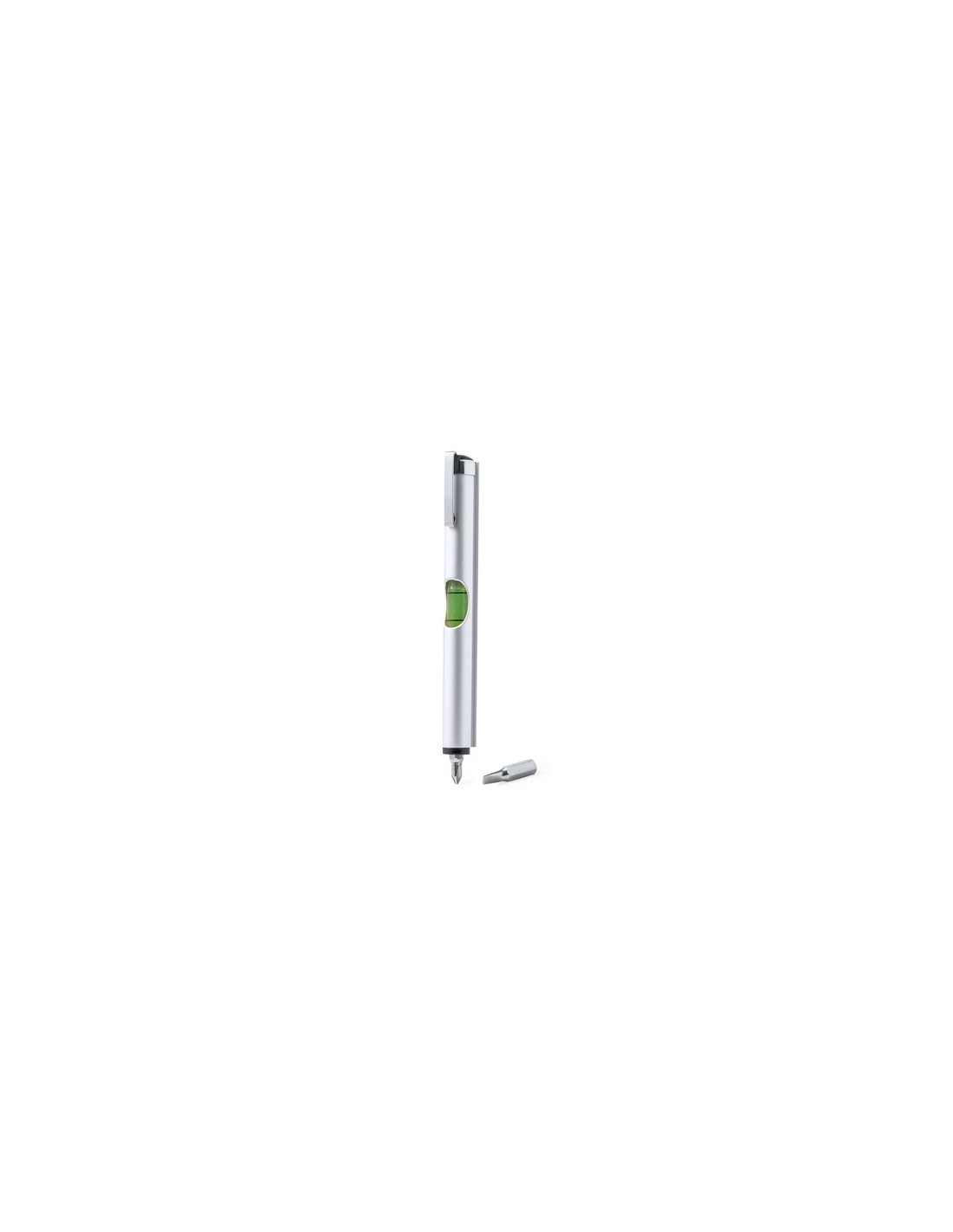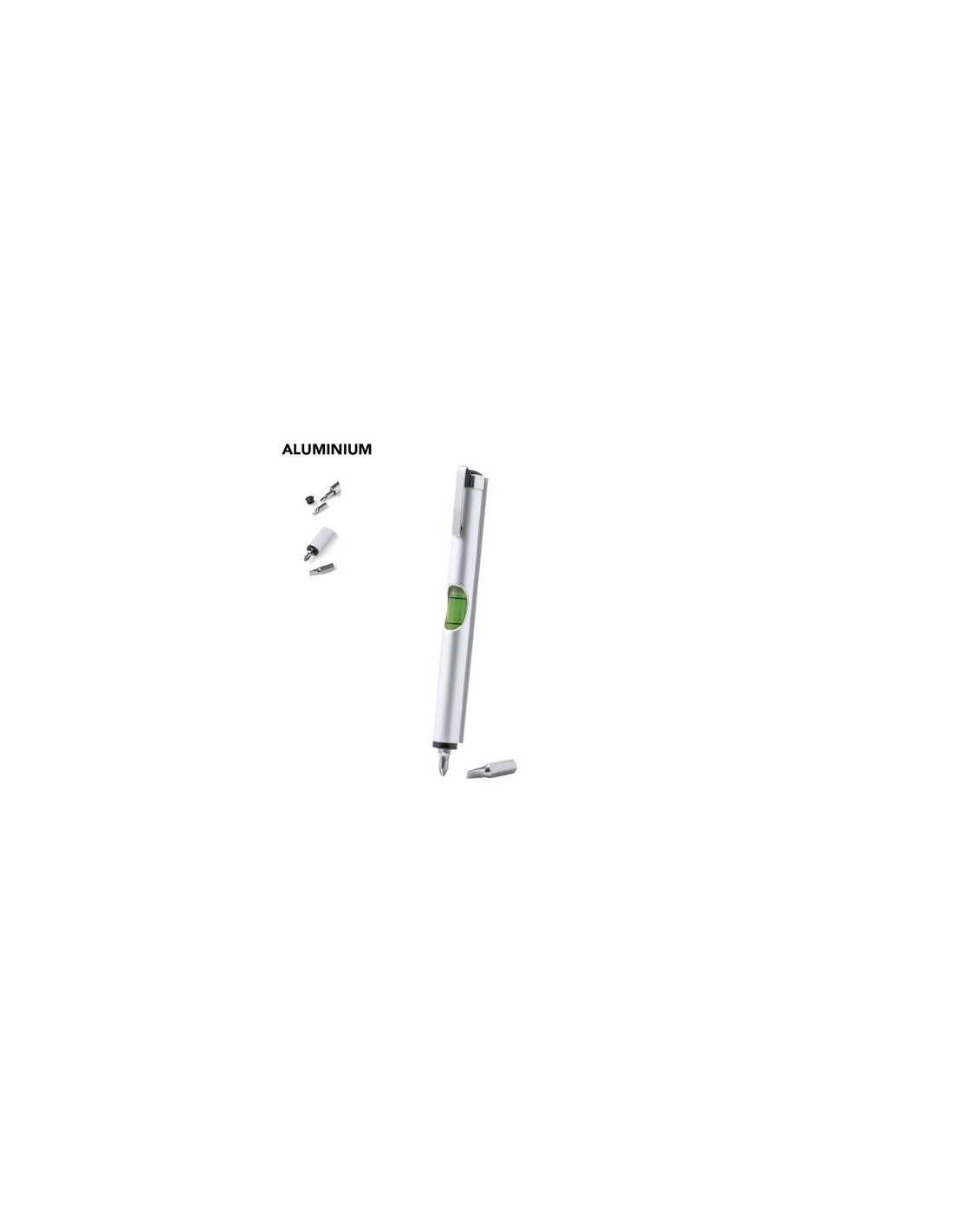 Práctica multiherramienta fabricada en aluminio, con nivel integrado en el cuerpo y dos cabezales para destornillador (plano y philips) en el interior. Con clip metálico de acabado cromado y presentada en caja de diseño kraft. 2 Accesorios. 3 Funciones Composition : Aluminio.
