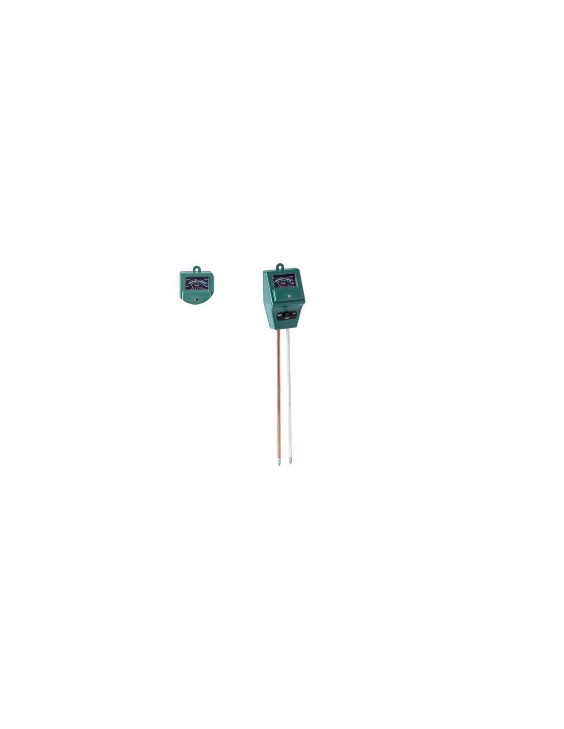 Higrómetro medidor de suelo 3 en 1, para un mayor control del crecimiento de los cultivos o plantas. Mide la humedad, el pH y la exposición a la luz, pudiendo cambiar de función mediante un botón. Válido para uso exterior e interior, con dos sondas para introducir en la tierra a nivel de las raíces y obtener unos resultados de lectura óptimos. Con instrucciones en español e inglés, presentado individualmente en caja de diseño kraft. 3 Funciones. Higrómetro, Luxómetro y Peachimetro