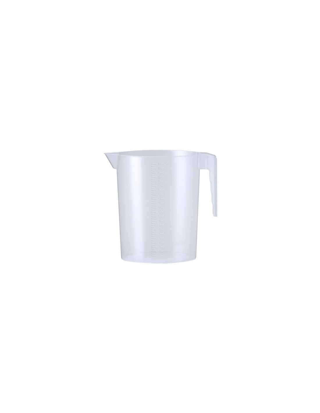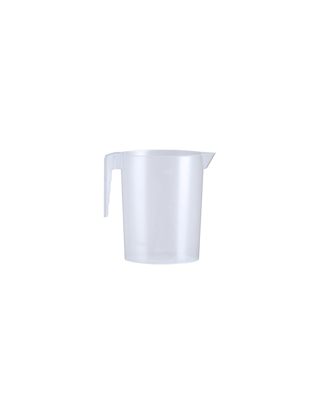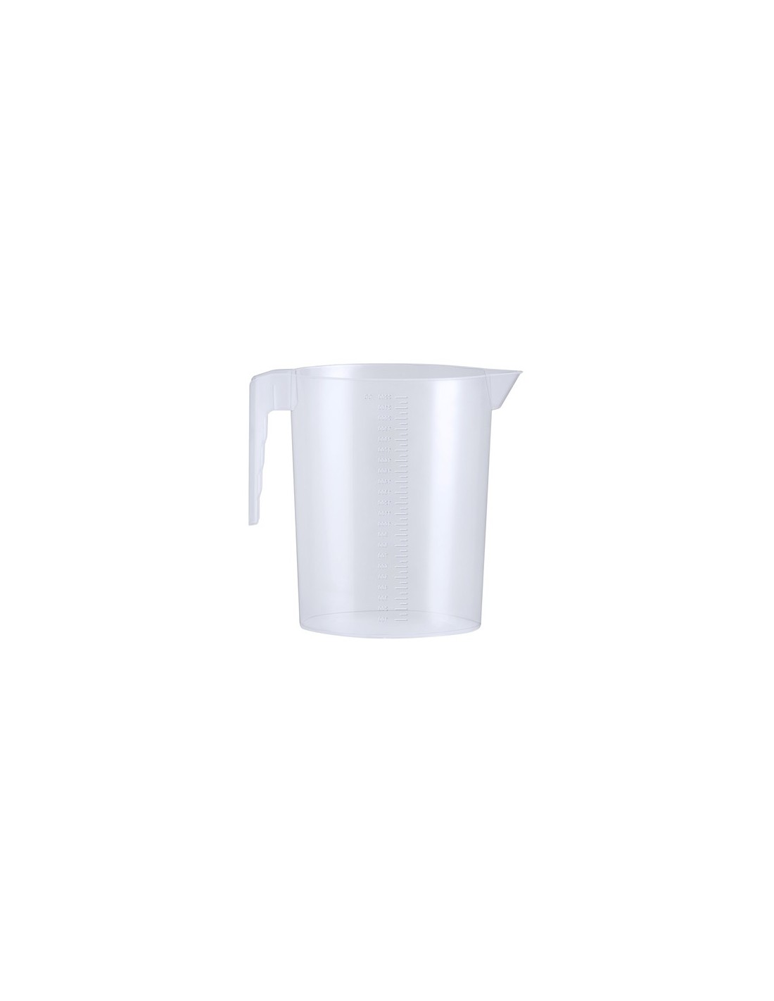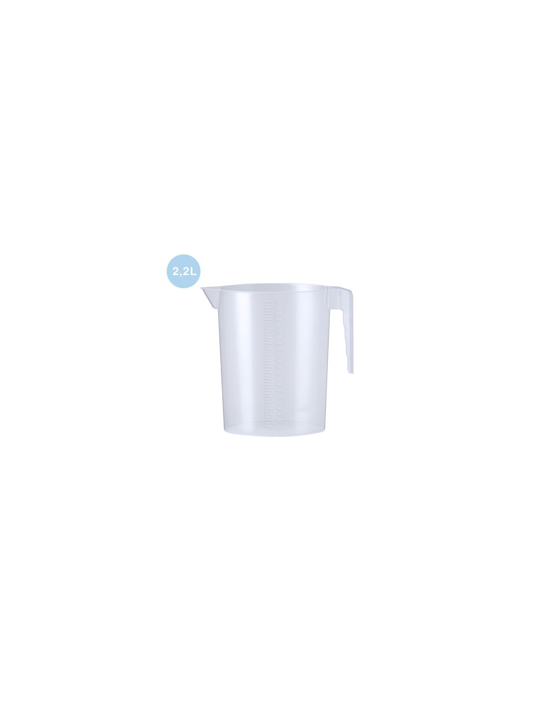 Jarra medidora de 2,2L fabricada en resistente PP transparente con asa. Con medidor lateral en tramos de 50 ml y vertedor en el borde para evitar derrames. 2,2 L Composition : PP.