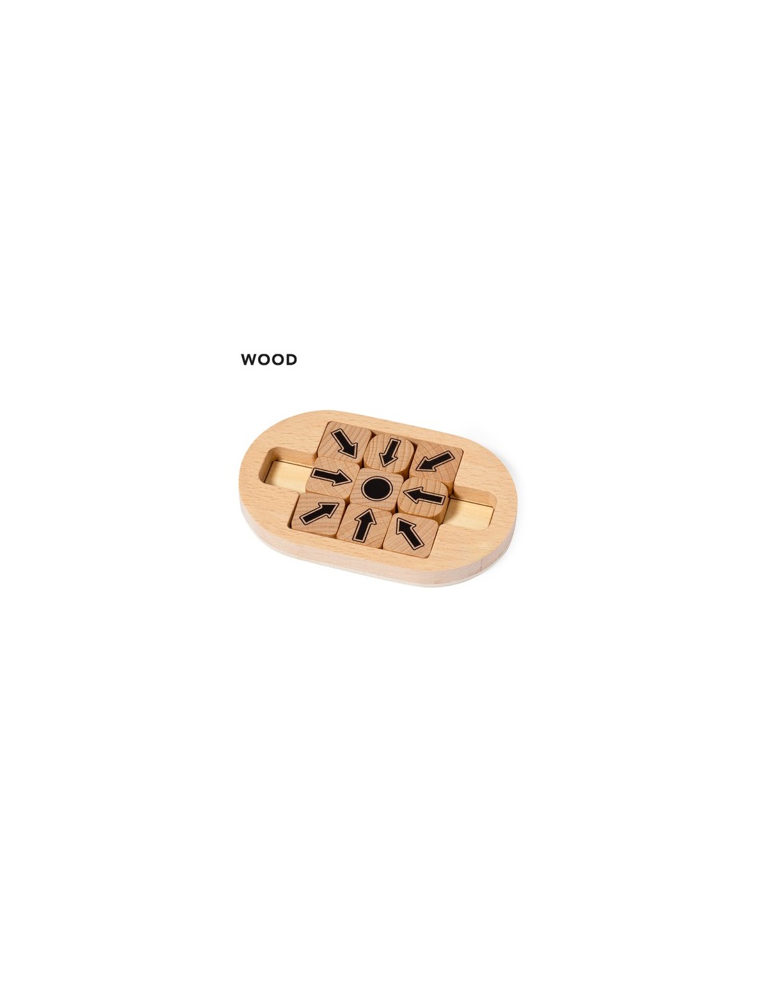Juego de habilidad fabricado en madera, compuesto por 9 piezas y un tablero. El desafío consiste en deslizar las 8 piezas con flechas por el tablero para ordenarlas apuntando a la ficha con un punto, ofreciendo destreza y estrategia. Presentado individualmente en una caja de diseño kraft. 9 Piezas Composition : Madera.