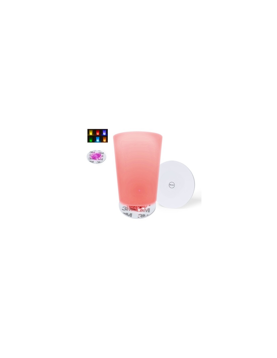 Original posavasos con 6 LEDs para iluminar las bebidas. Con botón en la base y diferentes posiciones de iluminación: en colores fijos o variados. Se fija a la base de cualquier bebida con cinta autoadhesiva y está alimentado por dos pilas de botón (incluidas). Luces Led Multicolor. 2 Posiciones de Luz, Fija e Intermitente. Adhesivo. Pilas Botón Incluidas