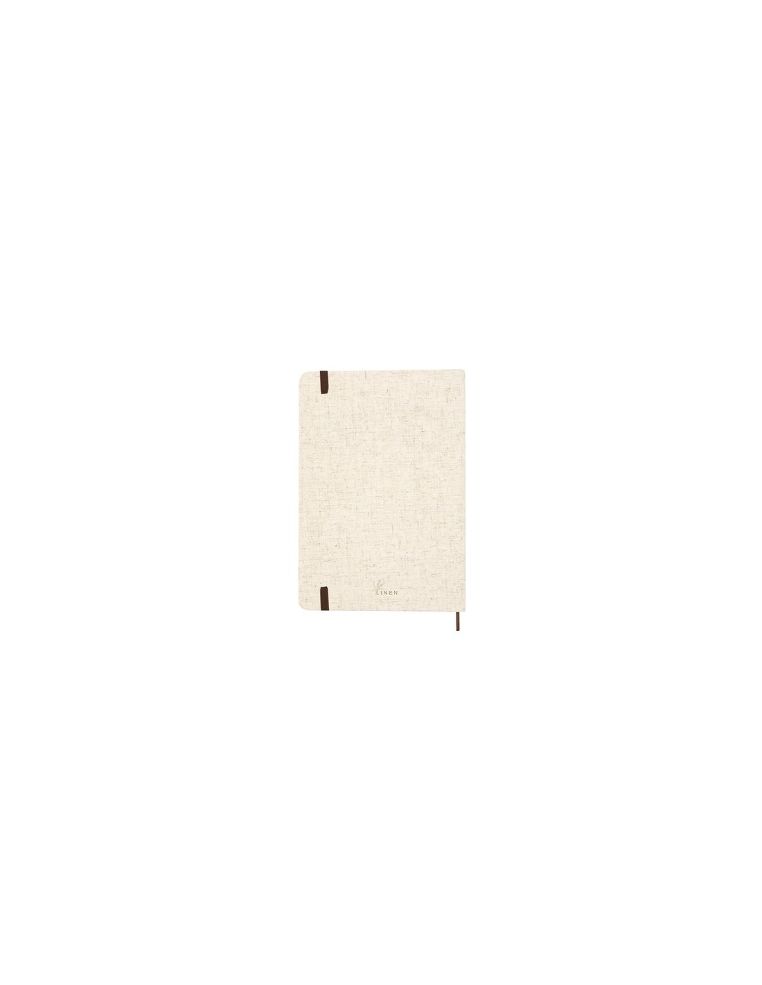 Bloc de notas confeccionado en suave lino. De tapas rígidas, marcapáginas, banda elástica de color marrón y 80 hojas lisas color natural. Con logotipo Lino en contraportada. Presentado en bolsa individual. Elaborado con elementos vegetales para así fomentar la utilización de materias primas naturales y reducir las emisiones contaminantes. Portada Rígida. 80 Hojas Composition : Lino.