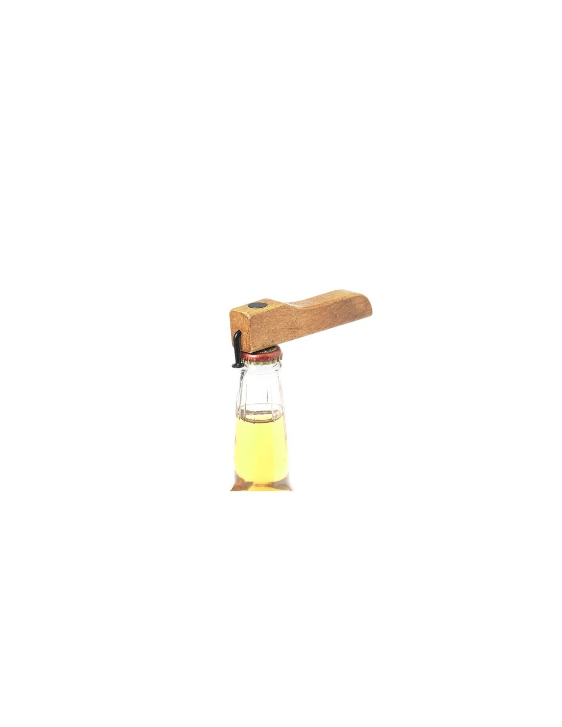 Original abridor de botellas en madera. De diseño industrial, fabricado en suave madera natural con abridor en forma de clavo y prácticos imanes para sujetar la chapa y poder colocarlo en cualquier superficie metálica. Presentado en caja de diseño kraft. Magnético Composition : Madera.