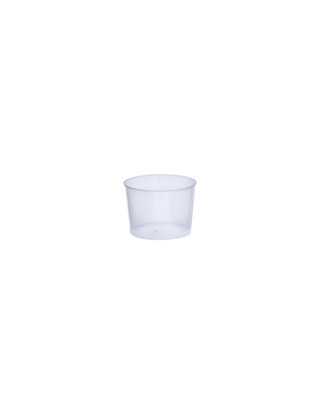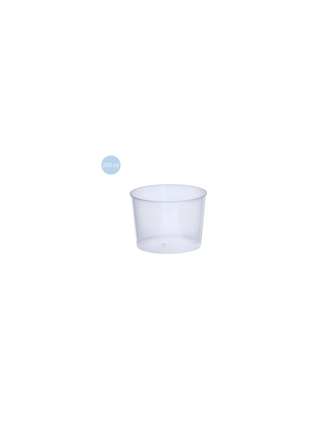 Vaso de 210 ml de capacidad en resistente y flexible material PP. Reutilizable y en acabado translúcido. 220 ml Composition : PP.