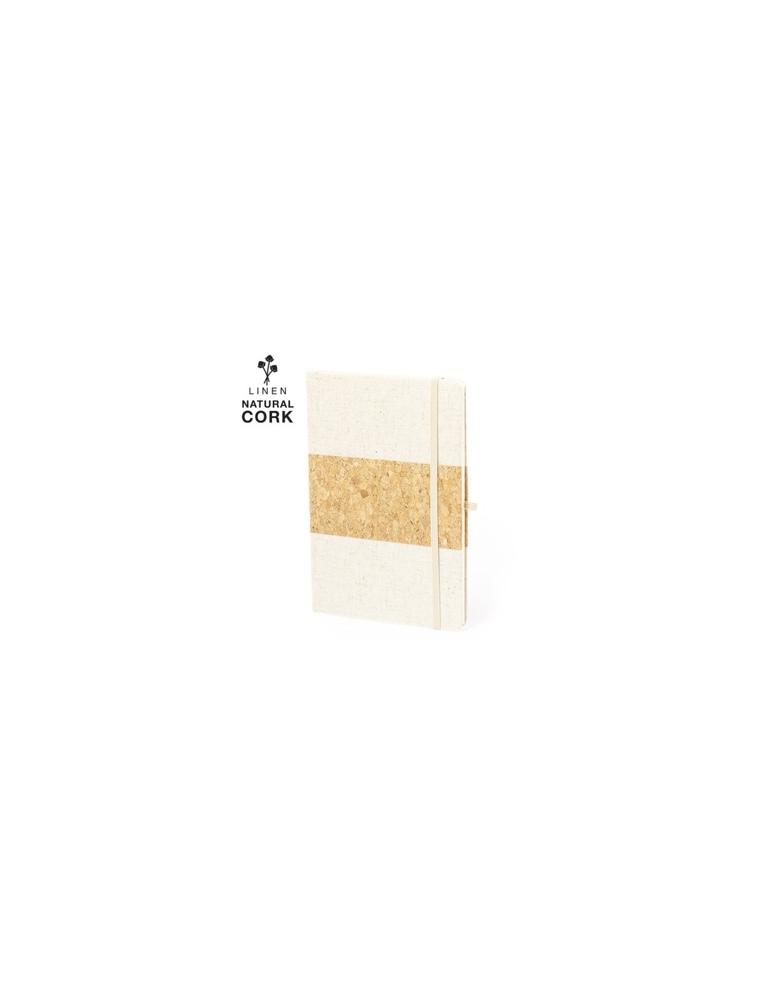 Bloc de notas de tapas exteriores confeccionadas en corcho y lino. De tapas rígidas, con soporte para bolígrafo, marcapáginas y 80 hojas lisas color natural. Presentado en bolsa individual. Elaborado con elementos vegetales para así fomentar la utilización de materias primas naturales y reducir las emisiones contaminantes. Portada Rígida. 80 Hojas Composition : Corcho/ Lino.