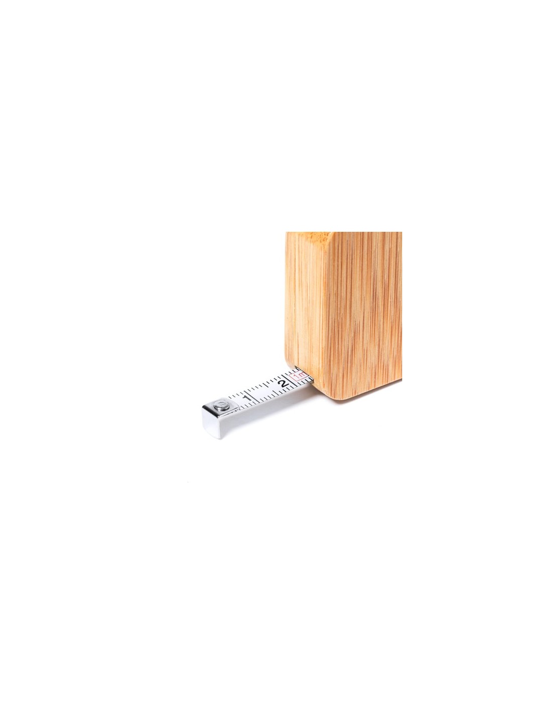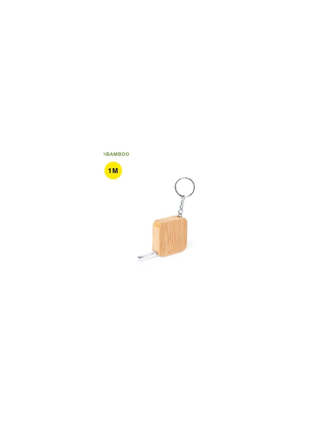 Flexómetro llavero fabricado en bambú. Con cuchilla metálica de 1 metro y medidas en centí metros.Materiales como el bambú fomentan la utilización de materias primas naturales, reduciendo las emisiones contaminantes. Proviene de una planta de gran resistencia y versatilidad, con crecimiento y regeneración rápidos, siendo una excelente alternativa al uso de madera tradicional. Composition : Bambú.