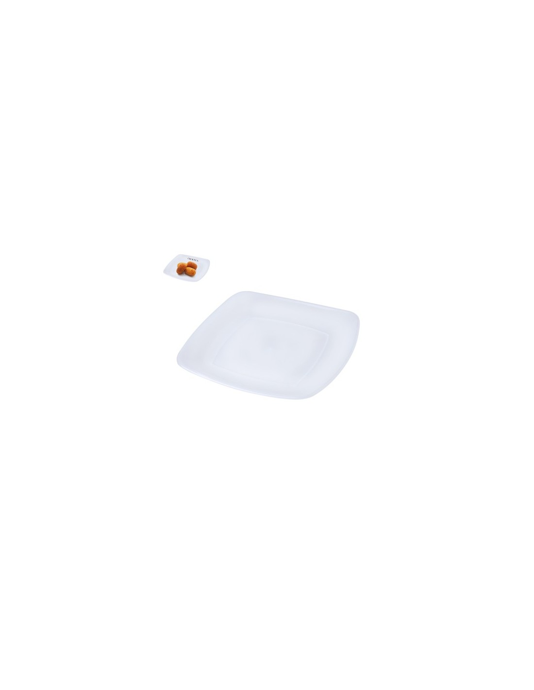 Plato plano en resistente y flexible material PP. Reutilizable y en acabado translúcido cuadrado. Composition : PP.