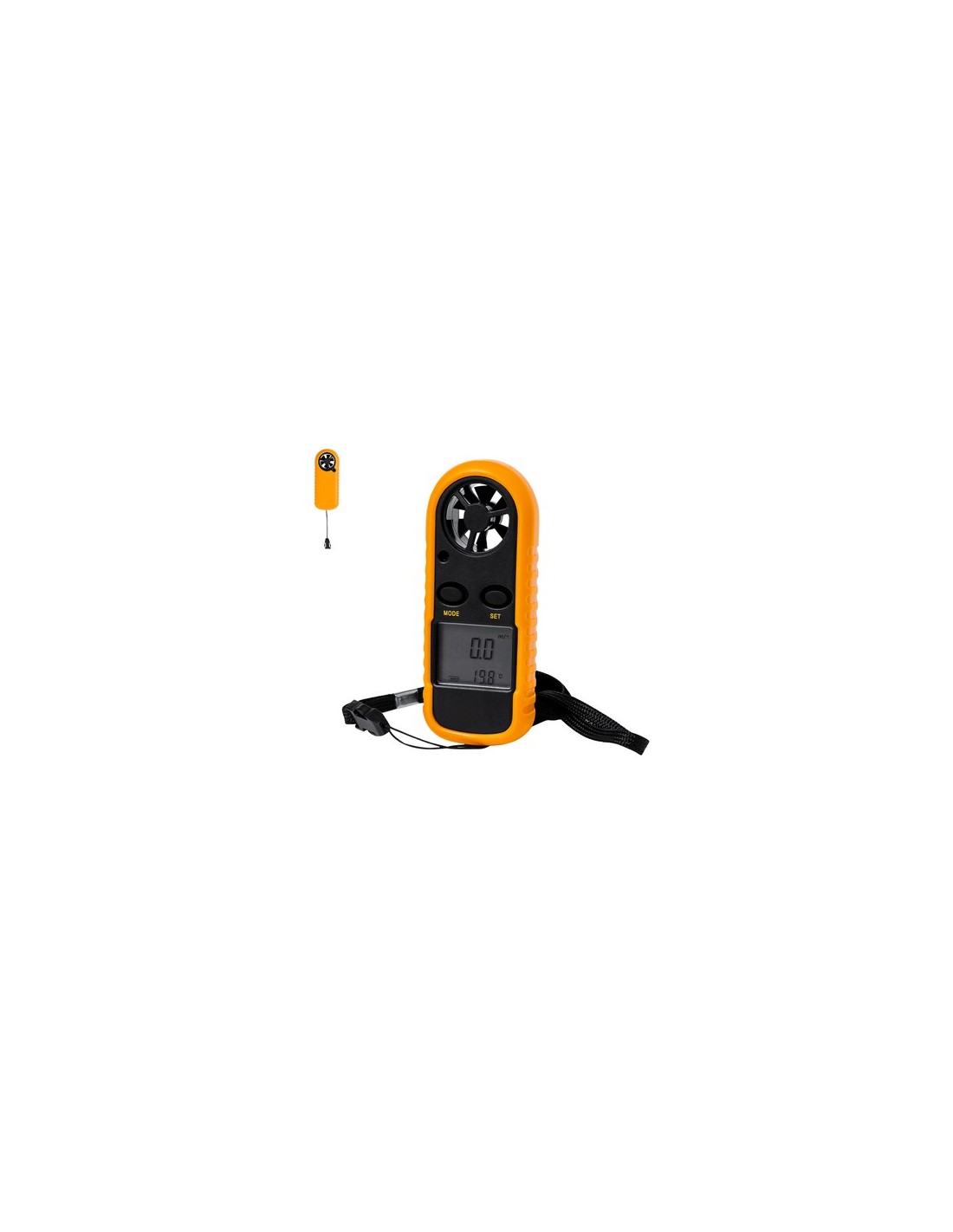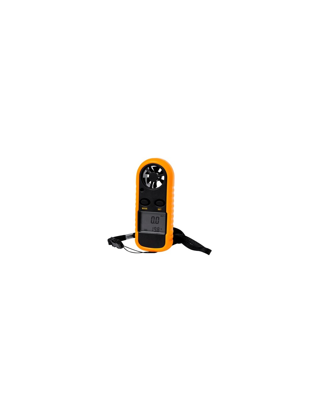 Anemómetro fabricado en resistente ABS. Con pantalla LCD retroiluminada de gran tamaño, que muestra la velocidad del viento, la temperatura y el nivel de batería. Incorpora funciones de medición de velocidad actual del aire, velocidad máxima y promedio. Disponibles multitud de unidades de medida, entre las que destacan la escala de intensidad de Beaufort y la velocidad del aire en distintos formatos (m/s; km/h; ft/min; nudos; mph). Además, muestra la temperatura ambiente en ºC/ºF, la temperatura atmosférica y la sensación térmica. Con función de apagado automático tras unos minutos de inactividad y memoria que permite acceder a los registros almacenados en mediciones anteriores, aunque se haya apagado el dispositivo con anterioridad. Alimentado por pila de botón (incluida) y presentado en caja individual de acabado kraft. Pila Botón Incluida
