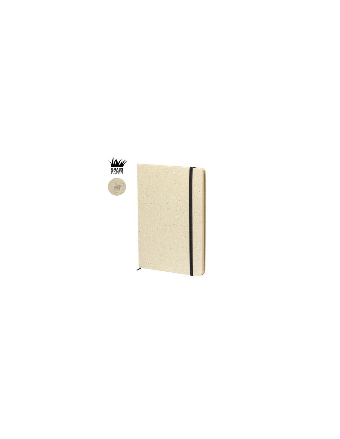 Bloc de notas A5 con tapas duras fabricadas a partir de hierbas recicladas. 80 hojas con disposición a una raya y de acabado kraft, con marcapáginas y banda elástica en color negro. Logotipo Grass Paper en hojas y contraportada. Presentado en una bolsa individual. El papel de hierba es una alternativa perfecta que garantiza la sostenibilidad en su proceso de fabricación, reduciendo el impacto medioambiental debido al rápido crecimiento y a la baja demanda de recursos necesarios para cultivarlo. Además en su elaboración se combina un 50% de base de hierba con otros elementos ecológicos, como madera reciclada. Portada Rígida. 80 Hojas Composition : Papel de Hierba.