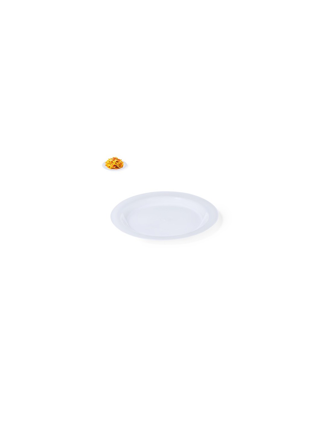 Plato plano en resistente y flexible material PP. Reutilizable y en acabado translúcido redondo. Composition : PP.