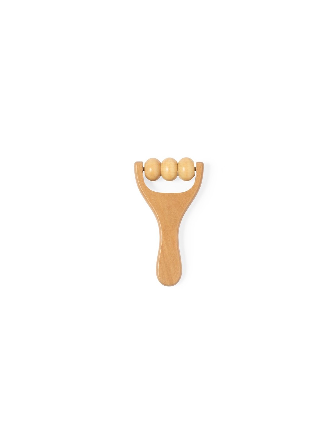 Masajeador elaborado en madera natural. Diseñado para proporcionar alivio y bienestar. Su empuñadura ergonómica garantiza un manejo cómodo, mientras que sus tres rodillos de madera ofrecen eficiencia y un masaje revitalizante, liberando la tensión muscular. Presentado individualmente en caja de diseño kraft. Composition : Madera.