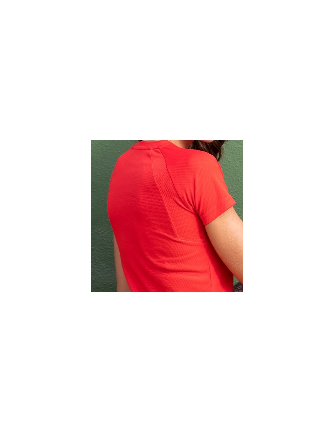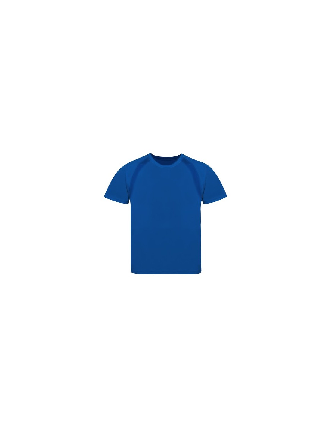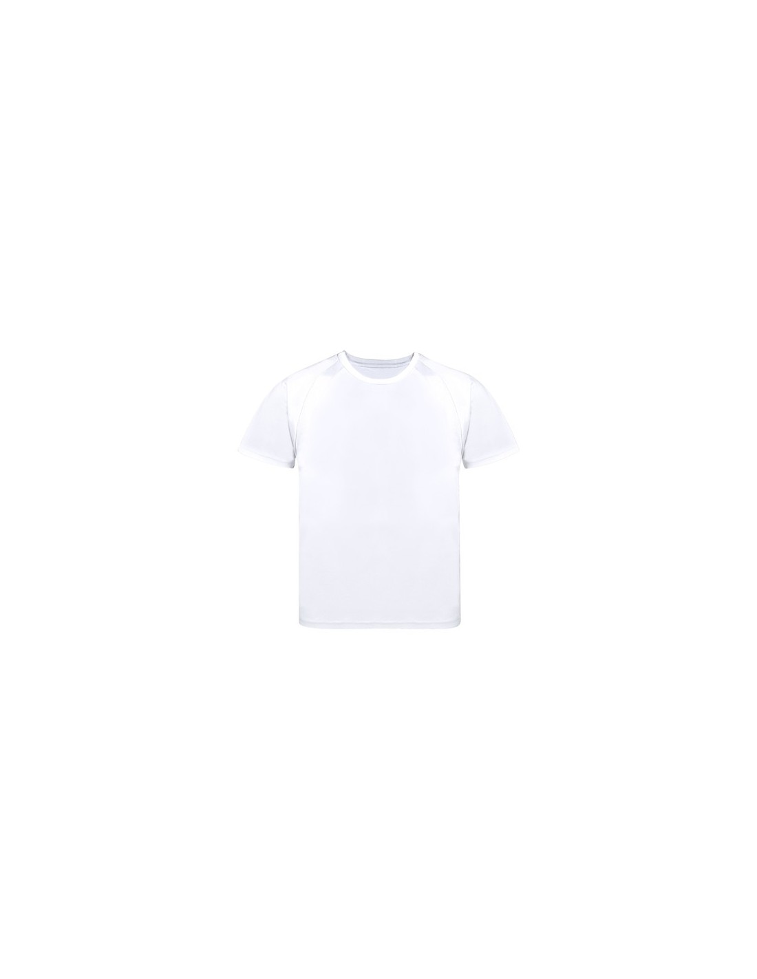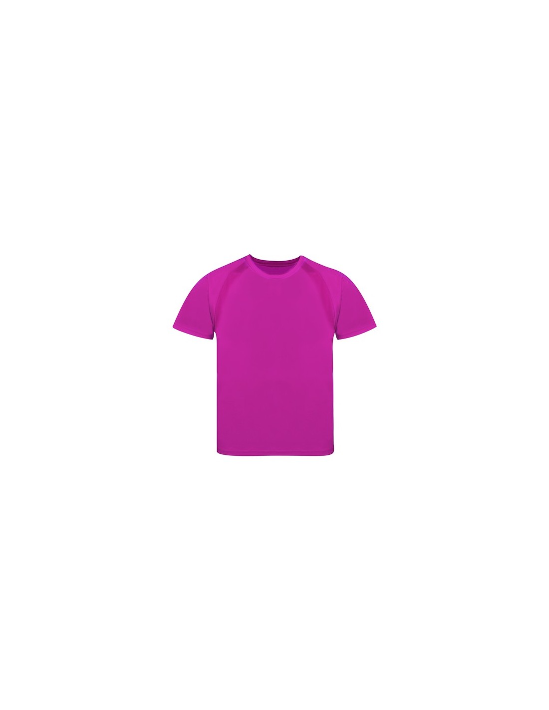Camiseta técnica para niño en material 100% poliéster transpirable de 135g/m2. Con manga ranglán, cuello redondo y con bandas frontales y laterales en tejido transpirable microperforado. Disponible en tallas 4-5, 6-8, 10-12. Transpirable Composition : 100% Poliéster 135 g/ m2.