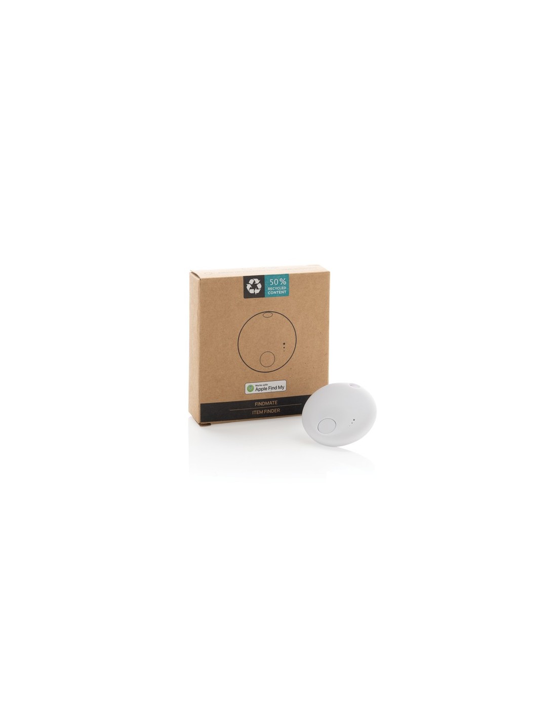 Realiza un seguimiento de tus artículos favoritos, sin importar en qué parte del mundo te encuentres, con este buscador de artículos de ABS reciclado. Conecta el buscador de artículos a tu billetera, llave o colócalo en un bolso, equipaje o incluso en tu mascota para localizarlo fácilmente usando la aplicación Apple Find My. Compatible con todos los dispositivos Apple ( iphone, ipad, iwatch, MAC) Modo perdido para avisarte cuando estás buscando tus pertenencias. Con señal sonora integrada mediante altavoz para encontrar tus dispositivos cuando estés cerca. La duración de la batería depende del uso, hasta 1 año. Después de eso, se puede reemplazar el CR2032. Embalado en caja mixta FSC sin plástico. Contenido reciclado total: 50% basado en el peso total del artículo. La certificación RCS garantiza una cadena de suministro de materiales reciclados completamente certificada. Sin PVC. Material : ABS reciclado Recycled Content Percent : 50 Conforme directiva bateria 2006/66EC, Conforme directiva equipamientos Radio y Telecomunicaciones 2014/53/EU, Conforme directiva de sustancias peligrosas 2011/65/EC & 2015/863, Hoja de datos de seguridad del material disponible, Conforme PAHS content in Reach & ZEK 01-4-08, Conforme directiva Phtalate content, Conforme directiva Battery transportation safety UN38.3, Certificado para transporte aéreo, Conforme directiva seguridad baterias Alcalinas EN62133, Libre de parafinas cloradas de cadena corta y media. WEEE Battery : 1 pila de botón - 2,5 g. Packaging : Caja de regalo All print codes : Pad Print - Print code default : Tampografía - parte frontal del artículo - 20 x 10 mm - max color : 5 Social Audits : BSCI Total CO2 emissions : 0,24.