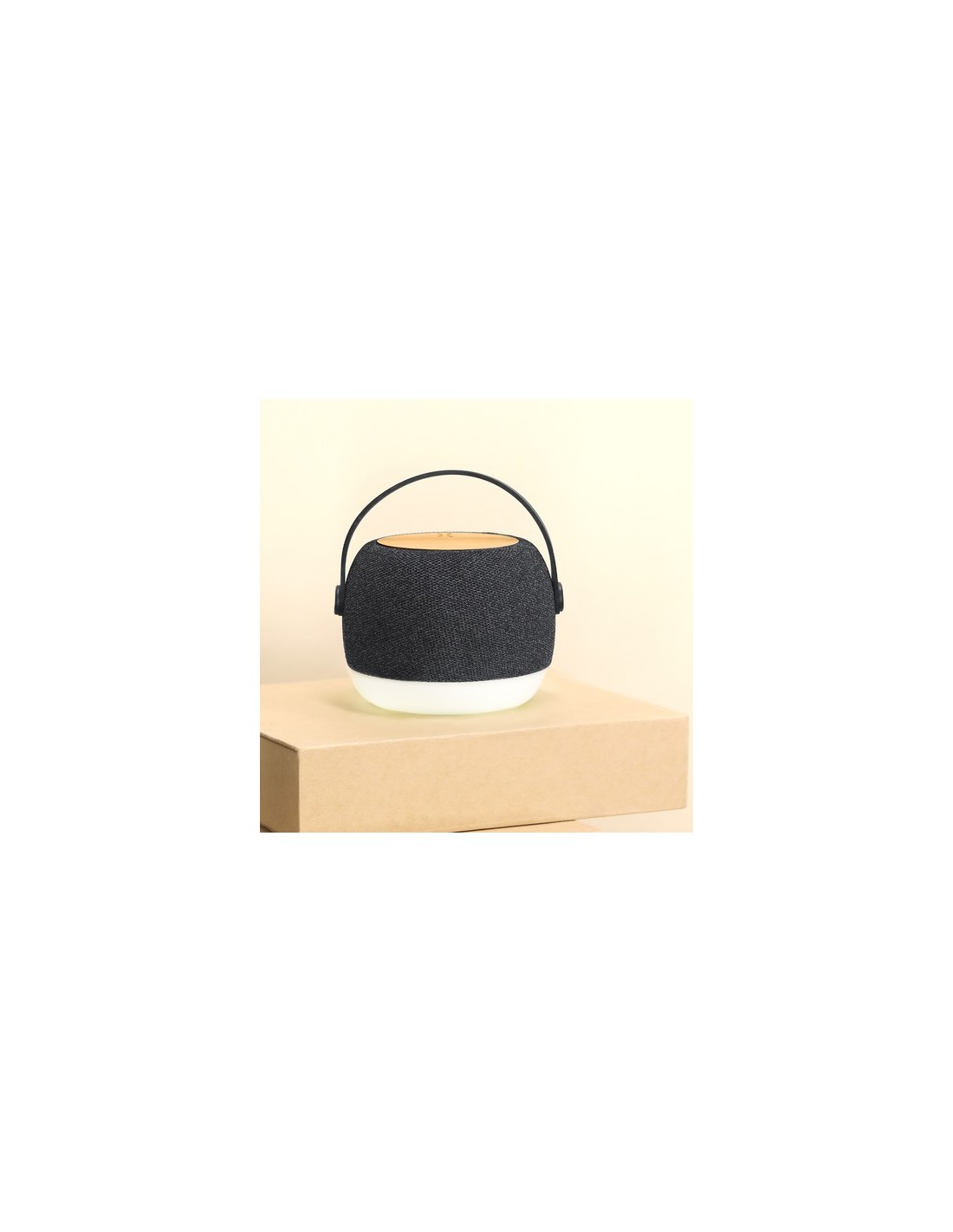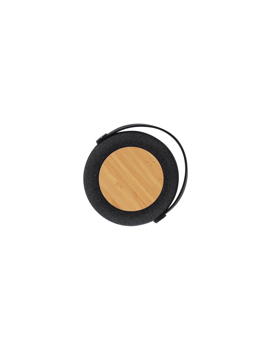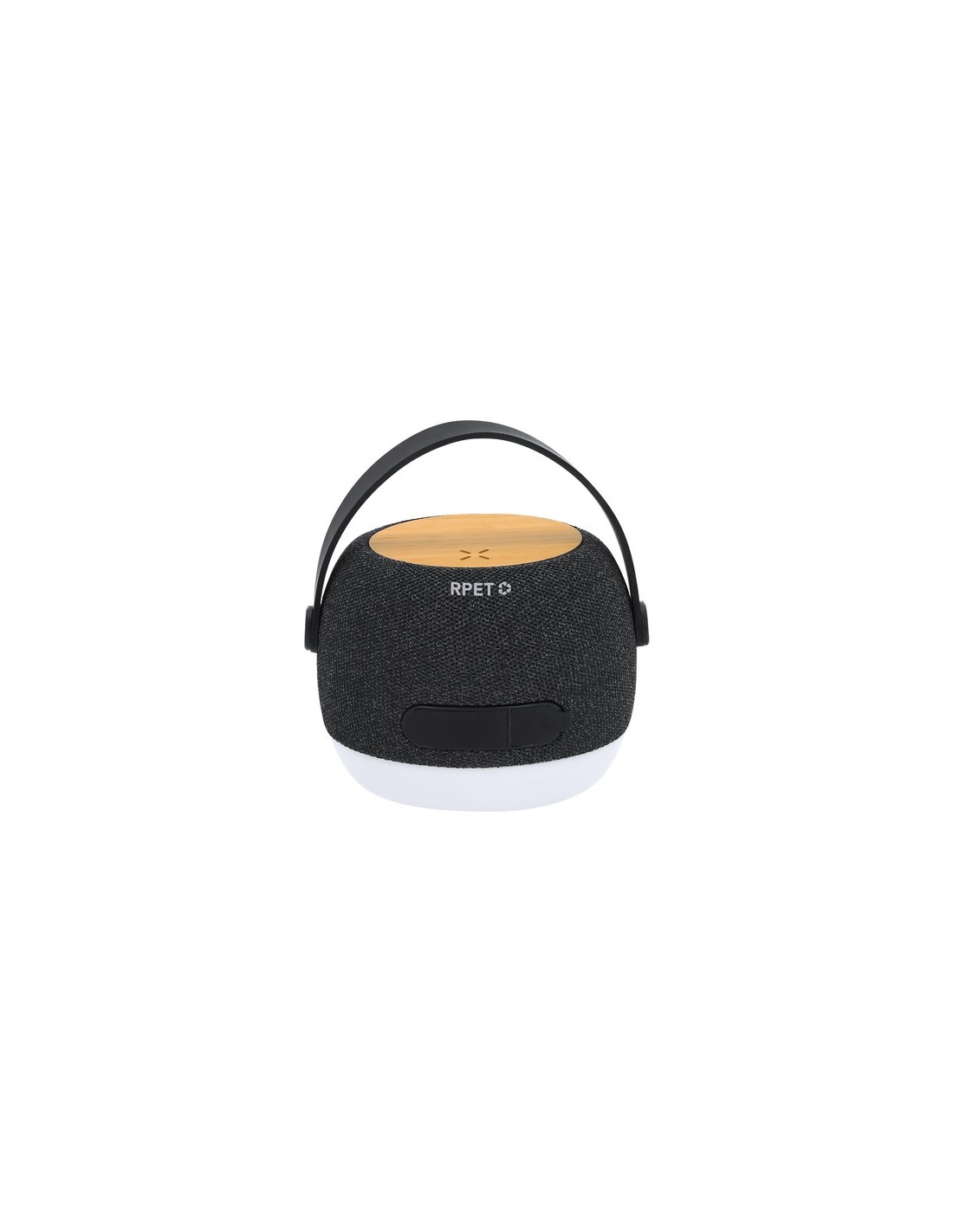 Altavoz cargador Bluetooth con carga inalámbrica de 15W, fabricado en RPET y bambú. Equipado con un sistema de iluminación, con 12 LEDs, que se sincronizan con el ritmo de la música, creando ambientes vibrantes y envolventes. Incluye una práctica y suave asa de silicona para facilitar su transporte. Incluye distintivo RPET.El material RPET se elabora a partir de plástico reciclado, para así fomentar la reutilización de residuos plásticos y ayudar a la sostenibilidad del planeta.Materiales como el Bambú fomentan la utilización de materias primas naturales, reduciendo las emisiones contaminantes. Proviene de una planta de gran resistencia y versatilidad, con crecimiento y regeneración rápidos, siendo una excelente alternativa al uso de madera tradicional. Luces Led. Inalámbrico 15W. Conexión Bluetooth. Potencia Sonido 5W. Batería 1200 mAh Composition : Poliéster 300D RPET/ Bambú.