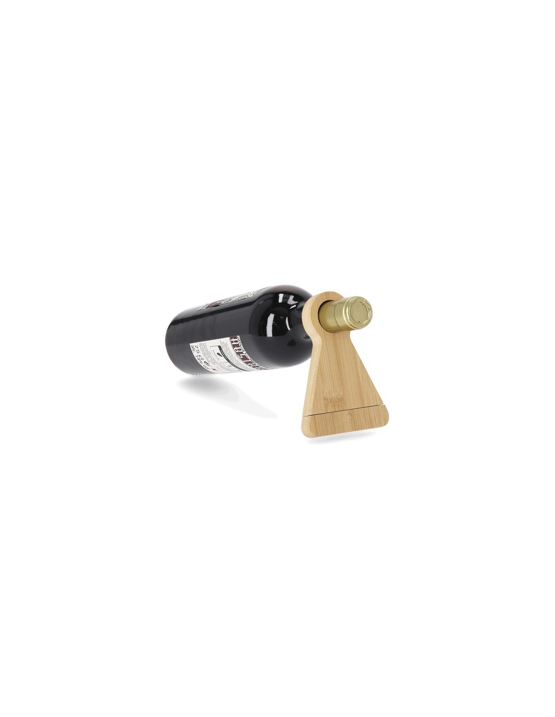 Práctico sacacorchos con función de soporte para botellas fabricado en bambú. Con troquelado redondo para apoyar la botella y sacacorchos extraíble en acero inoxidable fijado con imanes.Materiales como el bambú fomentan la utilización de materias primas naturales reduciendo las emisiones contaminantes. Además, el bambú proviene de una planta de gran resistencia y versatilidad, con crecimiento y regeneración rápida, siendo una excelente alternativa al uso de madera tradicional. Composition : Bambú.