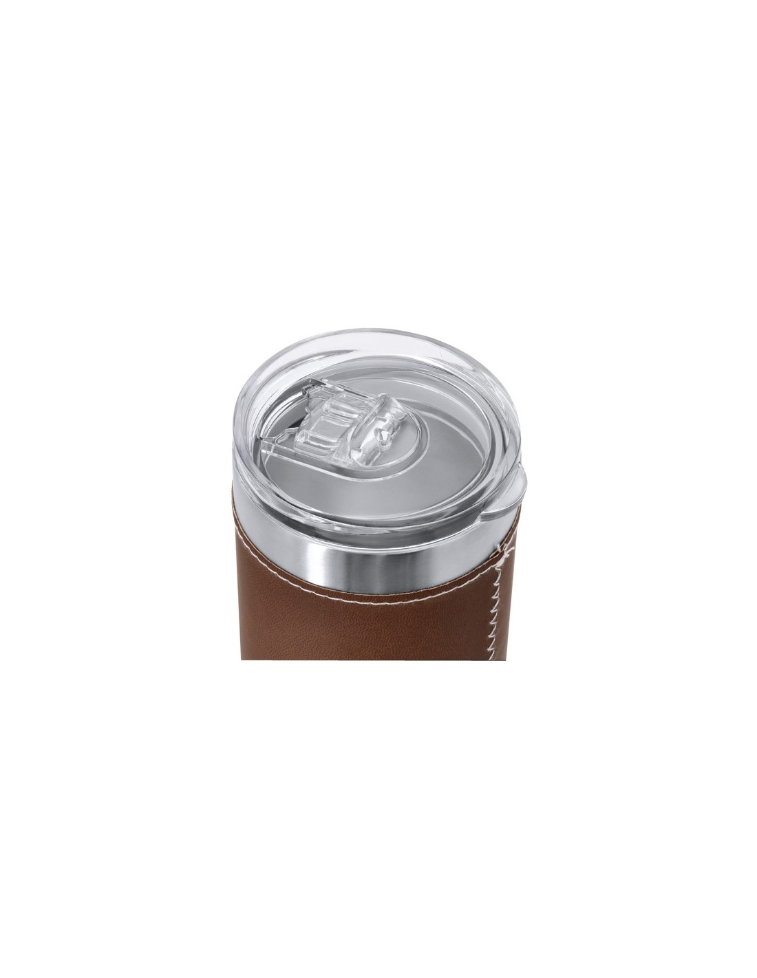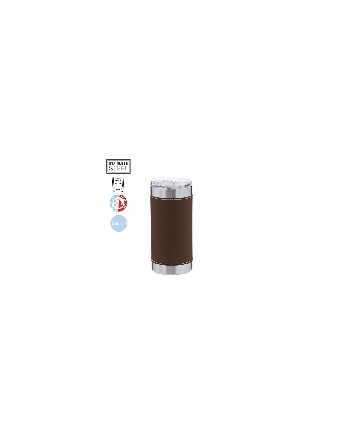 Vaso térmico fabricado en acero inox de doble pared y sofisticada PU. Con 530 ml de capacidad. Incluye elegante fajín de PU, confeccionado con distinguidas puntadas blancas. Incluye tapadera transparente con dosificador en tapa y de fácil apertura, libre de BPA. Es ideal para tener en tu escritorio, mesa o en cualquier superficie donde disfrutar tranquilamente de tu bebida favorita. 530 ml Composition : Acero Inox/ PU.