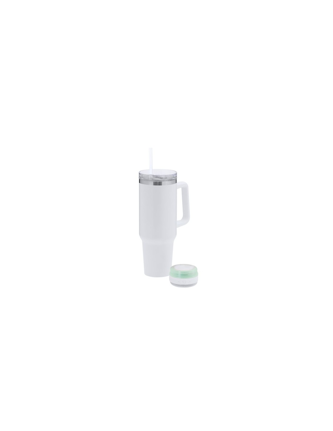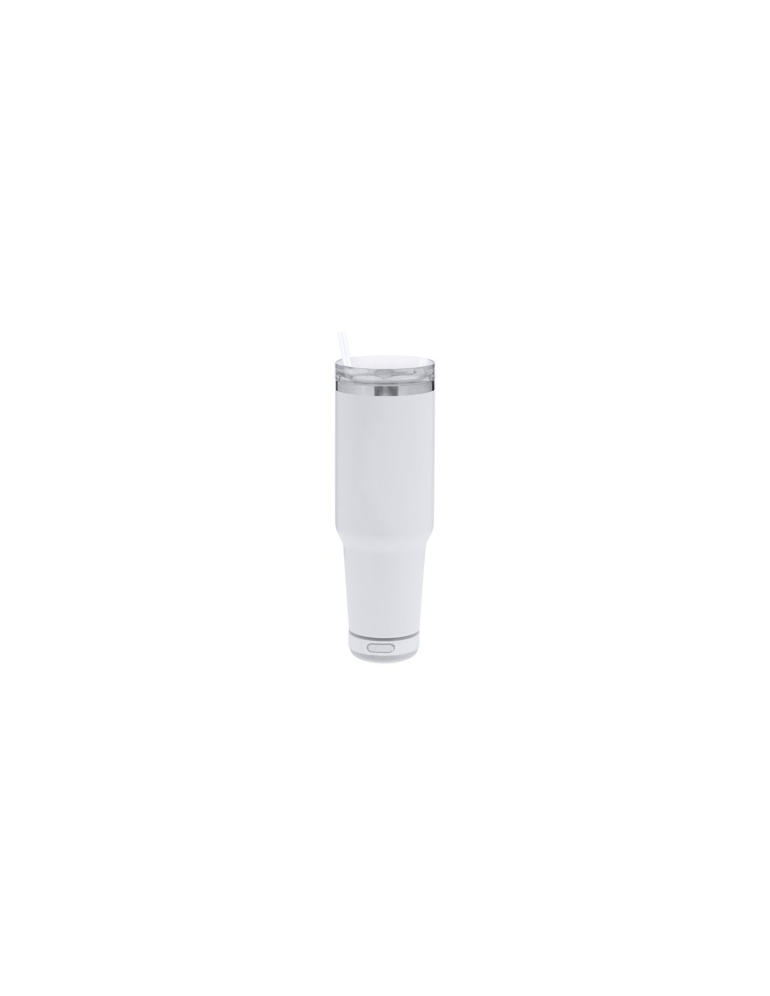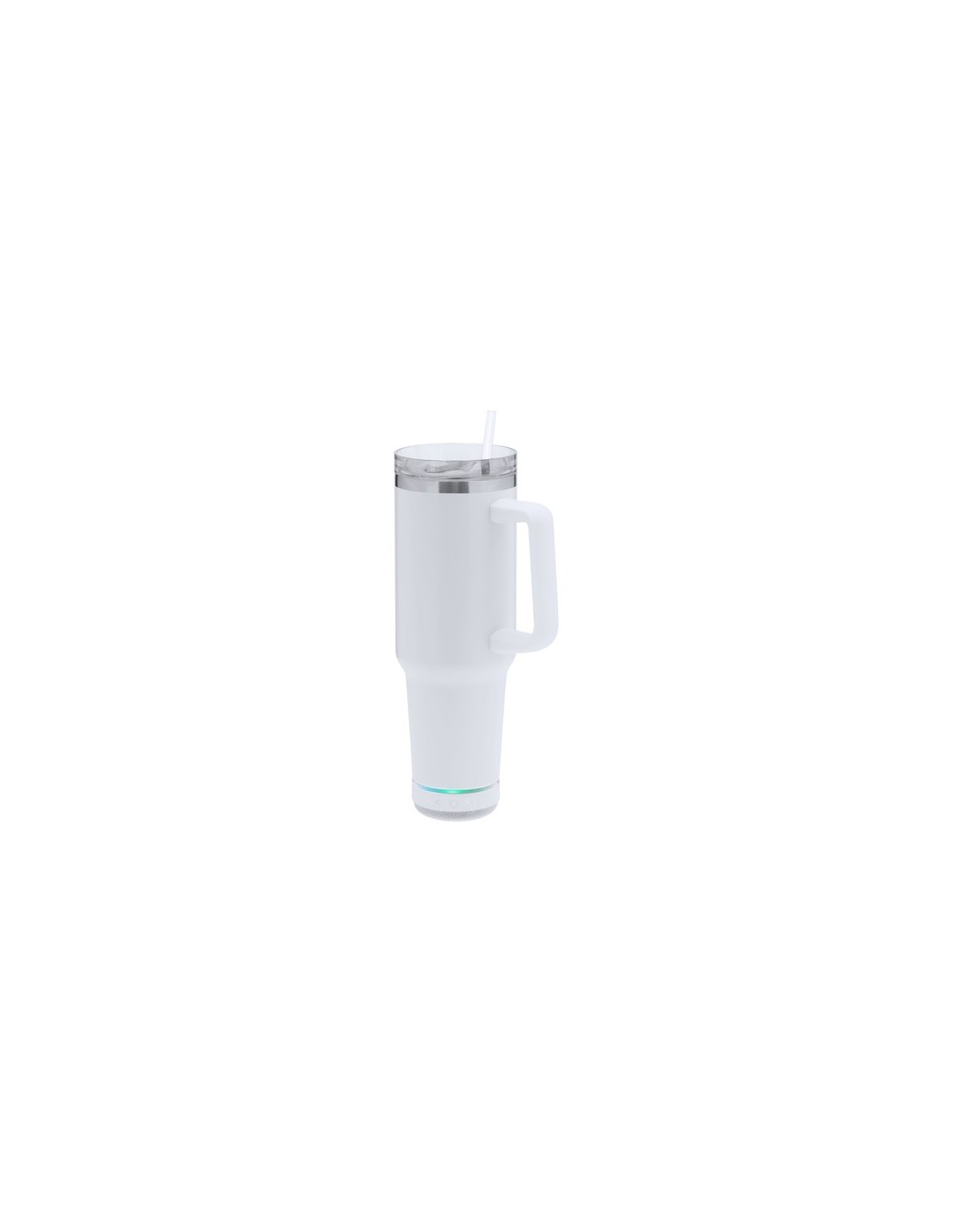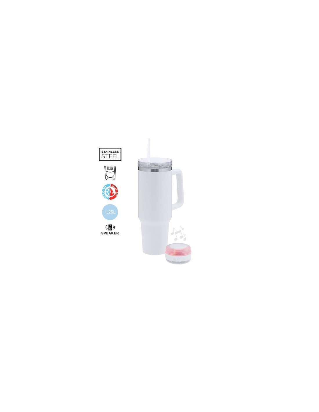 Taza térmica con Altavoz Bluetooth 5.3 de 3W integrado. Con 1,25L de capacidad, asa ergonómica y fabricado en acero inoxidable de doble pared, asegurando una durabilidad máxima y un excelente mantenimiento de la temperatura de las bebidas, ya sean frías o calientes. Es ideal para tener en tu escritorio, mesa o en cualquier superficie donde disfrutar tranquilamente de tu bebida favorita. La tapadera cuenta con un cierre a presión y un dosificador de fácil apertura, libre de BPA, garantizando seguridad y facilidad de uso. Cuenta con base antideslizante, a juego, que proporciona una mayor estabilidad. El altavoz Bluetooth integrado en la base de la taza es fácilmente extraíble gracias a su sistema de rosca, e incluye iluminación inteligente LED RGB, que se sincroniza al ritmo de la música, creando una experiencia visual y auditiva única. Además, la función manos libres permite atender llamadas sin necesidad de dejar lo que se está haciendo. Luces Led Multicolor. 1,25 L. Conexión Bluetooth. Potencia Sonido 3W. Batería 300 mAh Composition : Acero Inox.