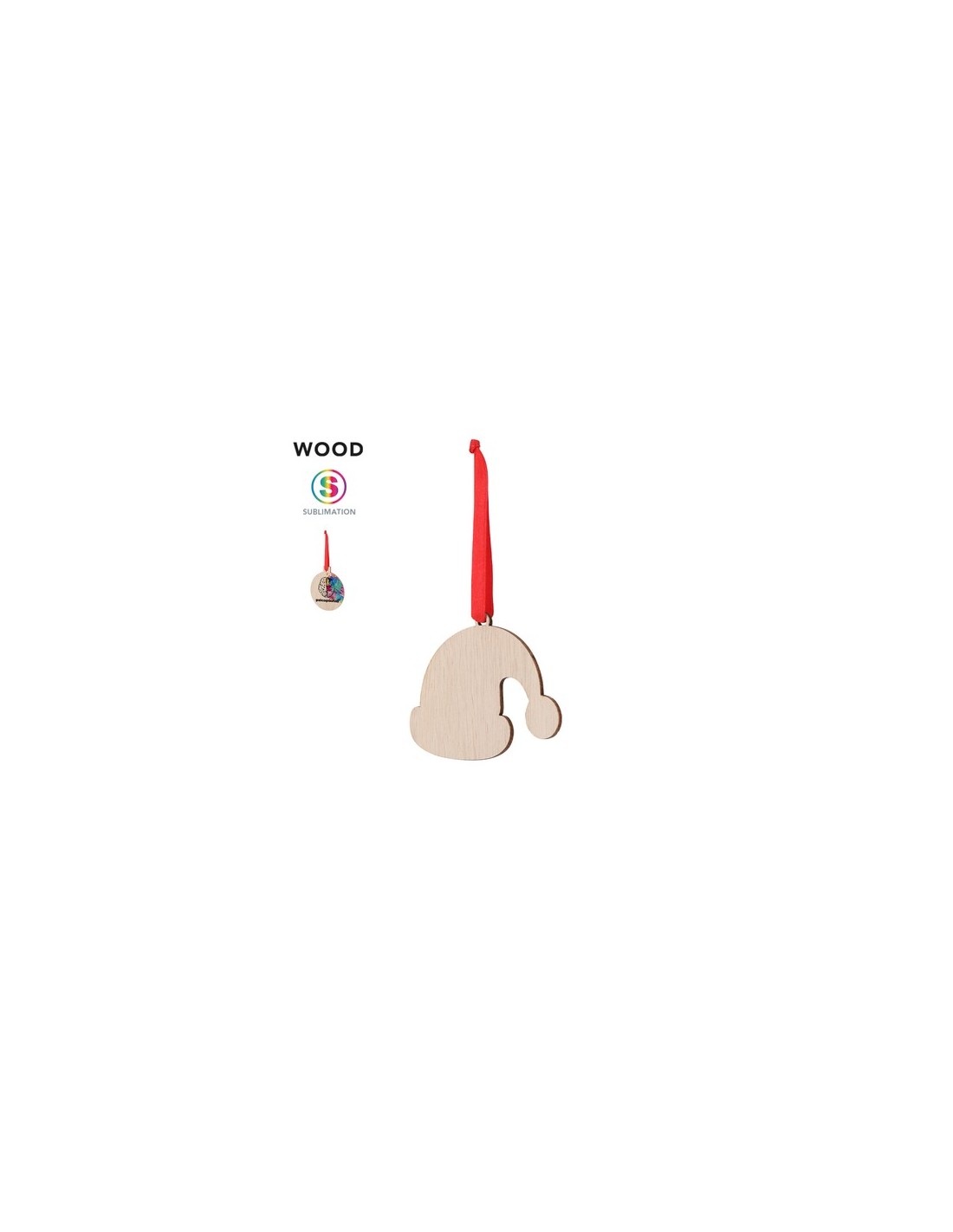 Adorno navideño fabricado en suave madera natural. Disponible en varios diseños: Gorro de Papá Noel, Árbol de Navidad y Bola de Navidad. Incluye lazo colgador en color rojo. Especialmente diseñado para marcaje en sublimación.Elaborado con elementos vegetales para fomentar así la utilización de materias primas naturales y reducir las emisiones contaminantes. Composition : Madera.