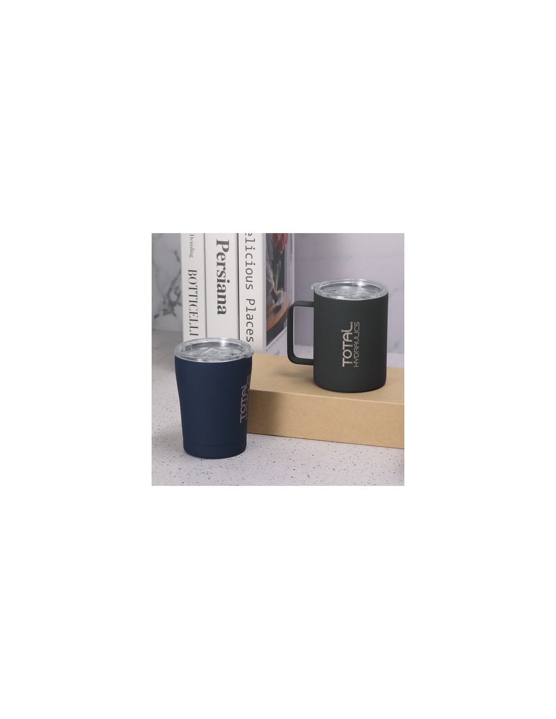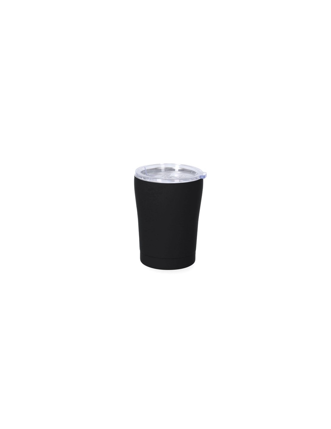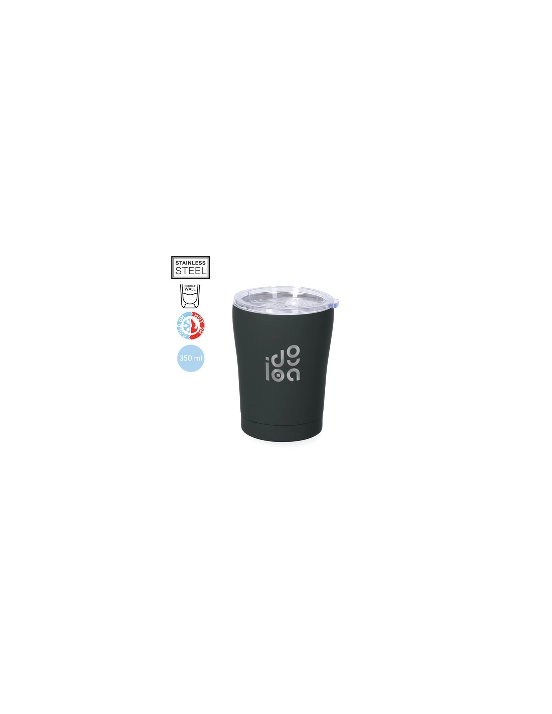 Vaso térmico fabricado en acero inox de doble pared y 350 ml de capacidad. Exterior en acabado caucho de acabado mate, especialmente diseñado para marcaje láser. Incluye tapa de cierre a presión transparente, con dosificador y de fácil apertura, libre de BPA. Es ideal para tener en tu escritorio, mesa o en cualquier superficie donde disfrutar tranquilamente de tu bebida favorita. 350 ml Composition : Acero Inox. Acabado Caucho.