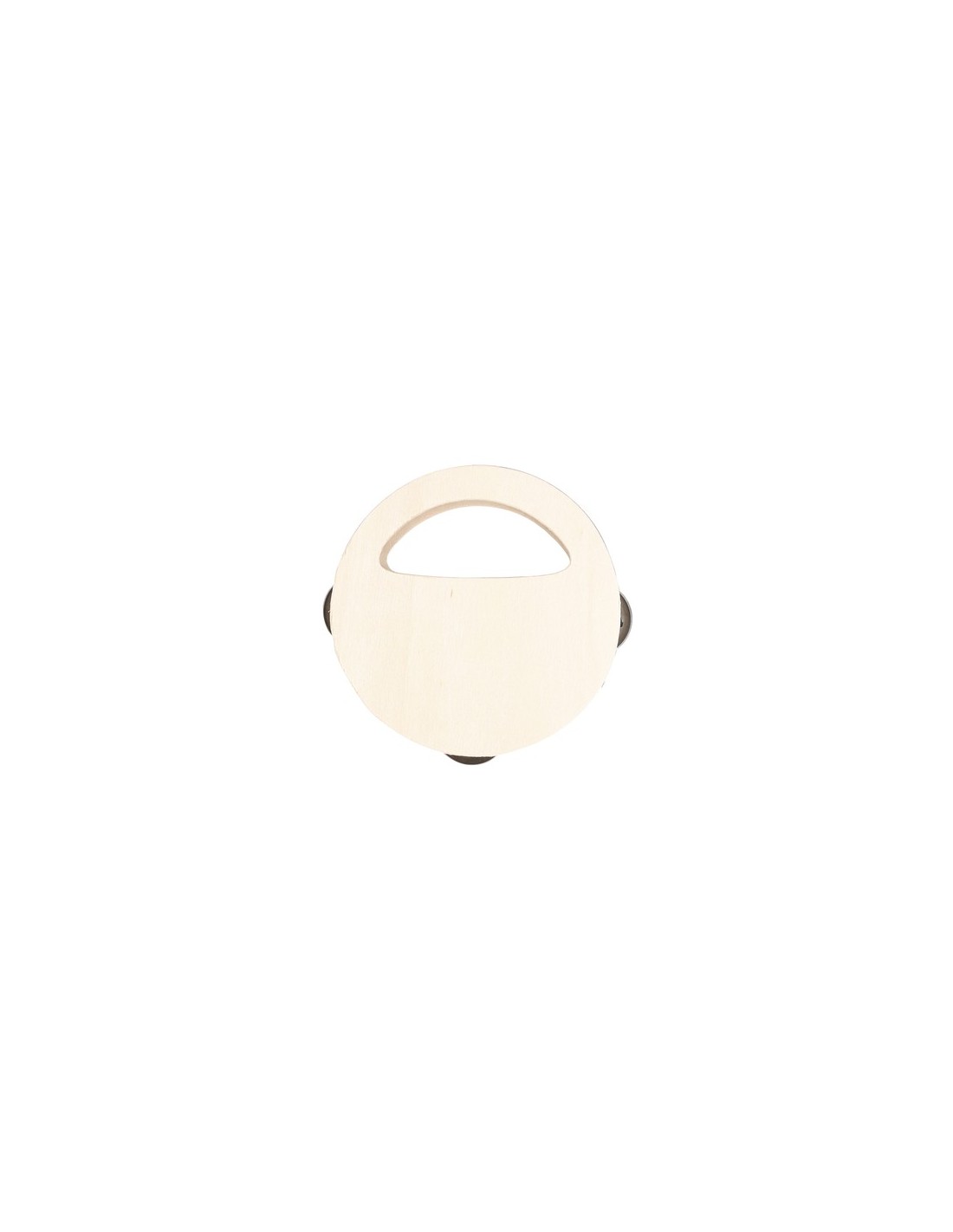 Pandereta de madera. De forma circular con práctica asa para un fácil agarre y 3 platillos dobles metálicos. Con amplia superficie de impresión. Elaborado con elementos vegetales para así fomentar la utilización de materias primas naturales y reducir las emisiones contaminantes. Composition : Madera.