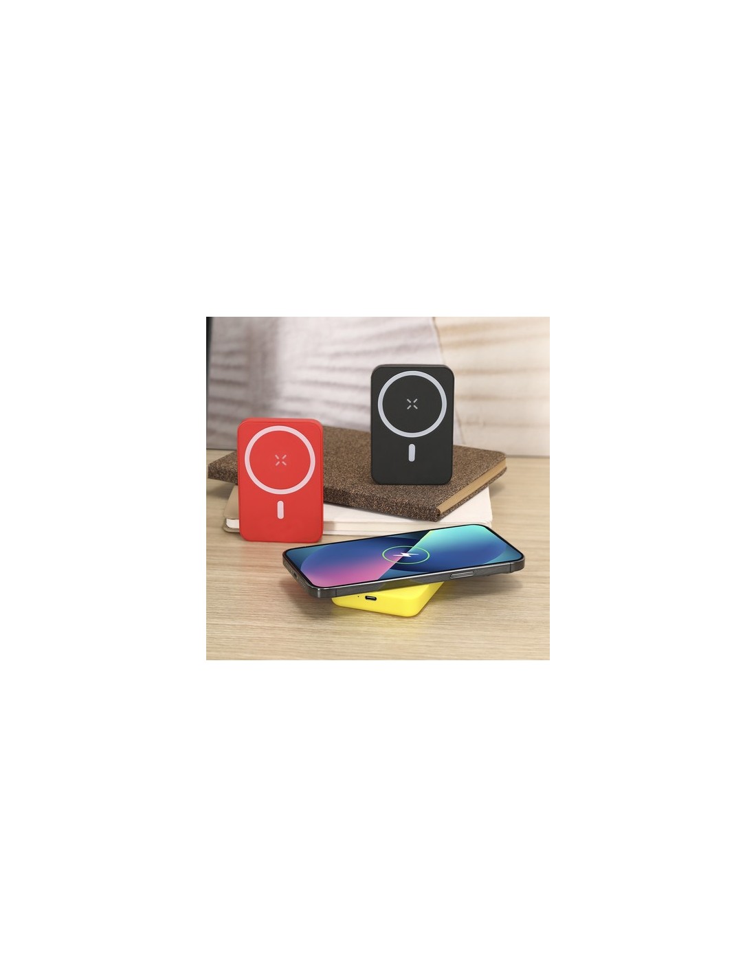 Batería auxiliar externa de 5.000 mAh con carga inalámbrica de 5W con fijación magnética Magsafe, permitiendo usar el dispositivo mientras se está cargando. Fabricada en ABS y acabado gomoso. Compatible con dispositivos equipados con tecnología de carga inalámbrica Qi.Las capacidades mostradas en todas nuestras baterías auxiliares externas son reales, incorporando todas ellas baterías de grado A y no recicladas, con una vida útil de al menos 500 ciclos de carga y según normativa CE. Además, están fabricadas conforme a los estándares RoHS y en cumplimiento con los siguientes requisitos de seguridad:Sistema de protección contra sobrecarga del power bank. Sistema de protección contra descarga completa que proporciona una mayor durabilidad del power bank. Sistema de bloqueo para evitar cortocircuitos. Sistema de transferencia de carga constante, acorde con la capacidad del dispositivo de destino. Inalámbrico 5W. Magnético. 5000 mAh. Salida y Entrada Tipo C
