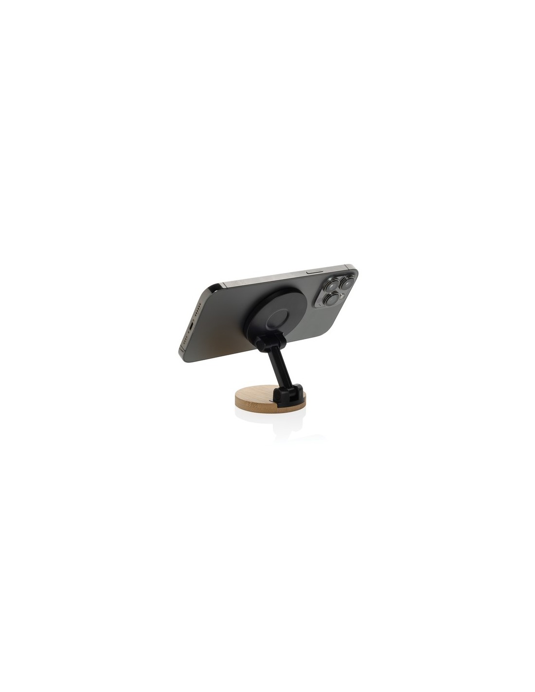 Soporte magnético para teléfono plegable y compacto con imán extra fuerte. Compatible con todos los teléfonos que vienen con un imán integrado (iPhone 12 y superior). Compatible con Android con teléfonos que admiten QI2. Otros teléfonos necesitan una funda magnética para teléfono. El soporte está fabricado con ABS reciclado certificado RCS (Recycled Claim Standard) y bambú natural. Contenido reciclado total: 30% en base al peso total del artículo. La certificación RCS garantiza una cadena de suministro completamente certificada de los materiales reciclados. Material : ABS reciclado, Bambú Recycled Content Percent : 30 Conforme directiva Cadmio 91/338/EC, Conforme contenido de plomo U.S, Conforme PAHS content in Reach & ZEK 01-4-08, Conforme directiva PCP content 1999/51/EC, Conforme directiva Phtalate content, Libre de parafinas cloradas de cadena corta y media., Contenido total de arsénico, REACH Anexo XVII, Entrada 19, No detectado Packaging : Polybag y a granel All print codes : Pad Print,CO2 Engraving 2 - Print code default : Tampografía - parte frontal y baja del artículo - 35 x 10 mm - max color : 5 Social Audits : BSCI Total CO2 emissions : 0,5.