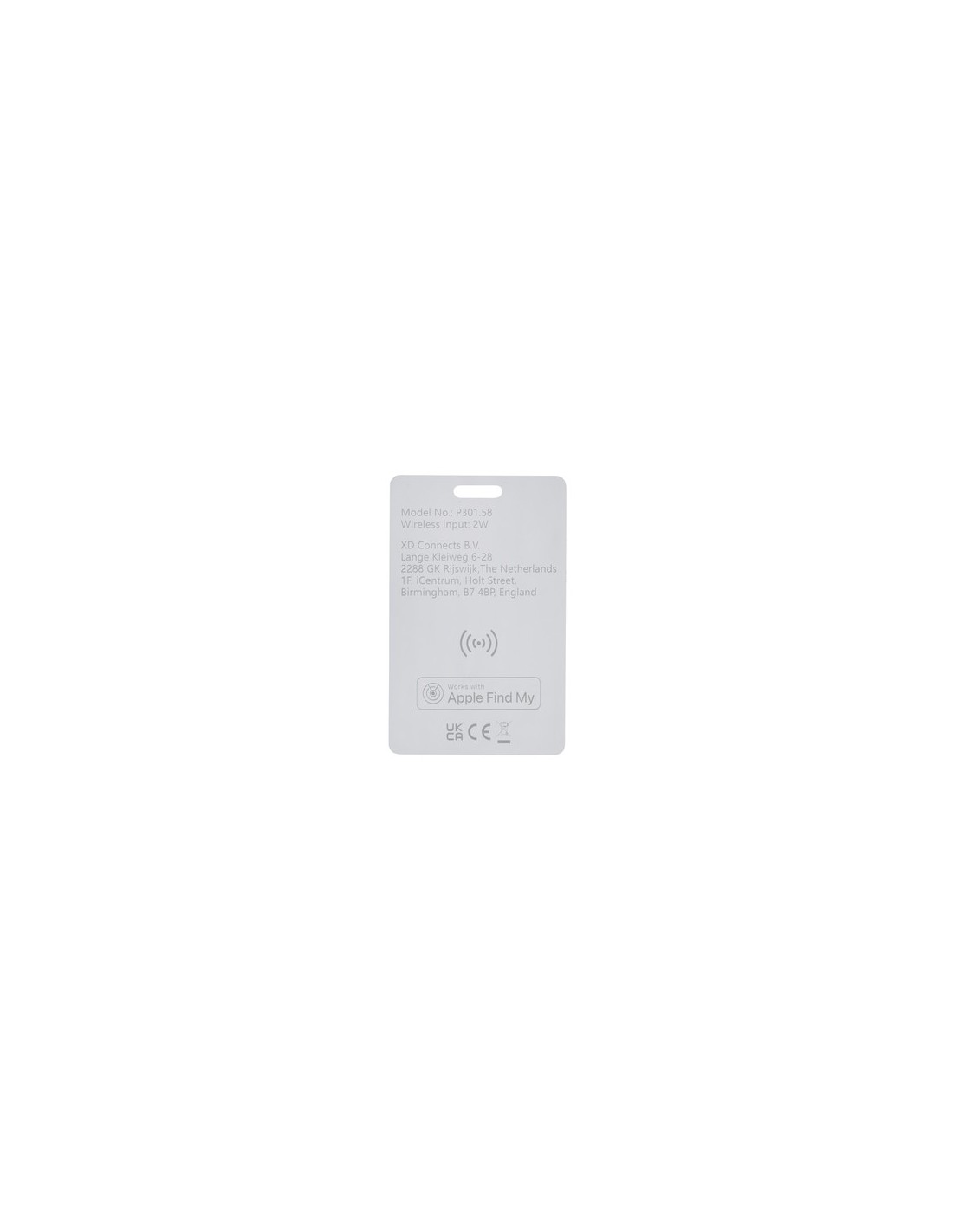 No vuelvas a perder tu billetera con la tarjeta ultradelgada Findit, que cuenta con la tecnología Find My integrada que se conecta sin problemas con la aplicación Find My de Apple. Con Findit, recibirás una notificación instantánea si olvidas tu billetera. Puedes rastrearla fácilmente en cualquier parte del mundo usando la red Find My de Apple. Una vez que estés cerca, puedes activar un sonido para encontrar su ubicación exacta. Resistente al agua IPX5 y con una batería recargable de larga duración. Simplemente coloca la tarjeta de 2,3 mm en un cargador inalámbrico y, en solo 1 hora, estará completamente cargada y lista para funcionar hasta por 6 meses, sin necesidad de reemplazar las baterías. Findit también tiene un menor impacto al estar hecha de ABS reciclado RCS, con un contenido reciclado total del 40% en función del peso total del artículo. La certificación RCS garantiza una cadena de suministro completamente certificada de materiales reciclados. Caja de regalo mixta FSC®. Material : ABS reciclado Recycled Content Percent : 50 Conforme directiva bateria 2006/66EC, Conforme directiva Cadmio 91/338/EC, Conforme directiva equipamientos Radio y Telecomunicaciones 2014/53/EU, Conforme directiva de sustancias peligrosas 2011/65/EC & 2015/863, Conforme contenido de plomo U.S, Hoja de datos de seguridad del material disponible, Conforme PAHS content in Reach & ZEK 01-4-08, Conforme directiva Phtalate content, Conforme directiva Battery transportation safety UN38.3, Conforme directiva seguridad baterias Alcalinas EN62133, Libre de parafinas cloradas de cadena corta y media. WEEE Battery : 1 Li-poli - 084545 - 2,4 g. Packaging : Caja de regalo All print codes : Digital Print 2,Pad Print - Print code default : Marcaje digital - parte frontal del artículo - 52 x 83 mm - max color : 4 Social Audits : BSCI Total CO2 emissions : 0,23.