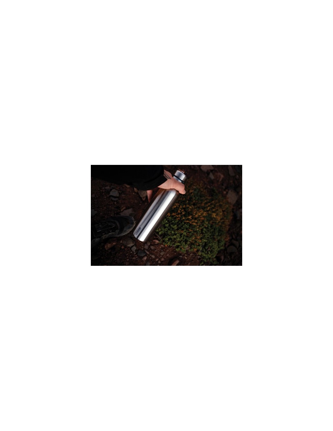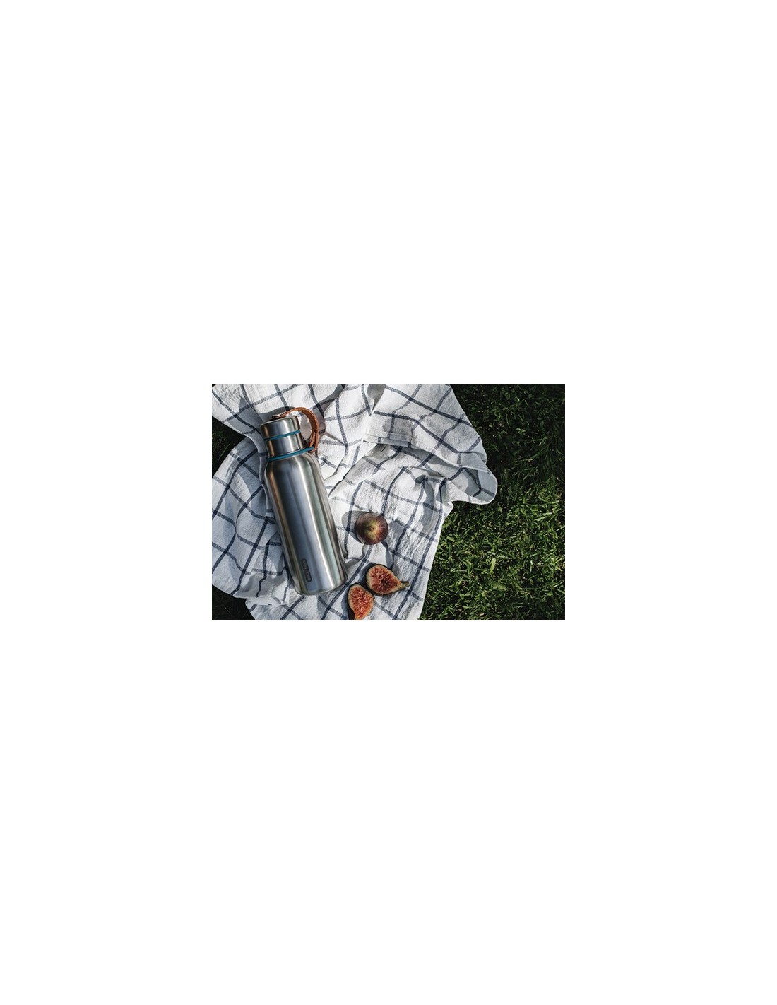 La botella de agua con aislamiento de acero inoxidable es una elegante botella sellada al vacío que mantendrá las bebidas frías durante 24 horas o calientes durante 12 horas. La tapa también es completamente de acero inoxidable, lo que significa que el agua no entra en contacto con ningún plástico. El cuero artificial actúa como asa de transporte y proporciona un bonito detalle de diseño. Lavar a mano únicamente. Material : Acero inoxidable Recycled Content Percent : 0 Sin materiales Bisphenol A, Conforme directiva seguridad Alimentos 1935/2004/EC & 2020/1245 Packaging : Caja de regalo All print codes : Pad Print Drinkware,Laser Engraving 3 - Print code default : Tampografía - parte frontal del artículo - 30 x 80 mm - max color : 5 Social Audits : SMETA Total CO2 emissions : 4,26.
