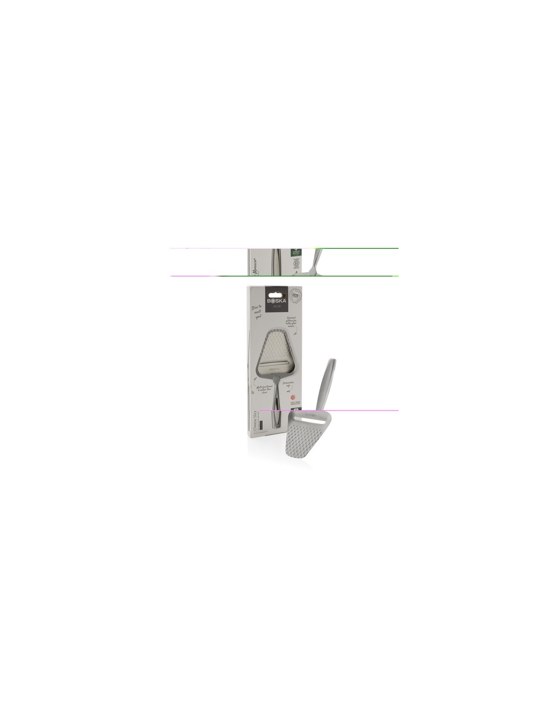 El Cortador de Queso Monaco+ es el verdadero líder entre los cortadores de queso. Este cortador de acero inoxidable, de la marca BOSKA – una empresa certificada como B Corporation – es adecuado para todo tipo de queso, es apto para lavavajillas y neveras, y cuenta con un exclusivo patrón de diamante antiadherente. Galardonado con el prestigioso Red Dot Design Award y respaldado por una garantía de por vida, este cortador de queso combina calidad de primera con estilo. Material : Acero inoxidable Recycled Content Percent : 0 Sin materiales Bisphenol A, Conforme directiva seguridad Alimentos 1935/2004/EC & 2020/1245 Packaging : Caja de regalo All print codes : Laser Engraving 2 - Print code default : Grabado a láser - asa - 60 x 6 mm - max color : 1 Total CO2 emissions : 1,34.