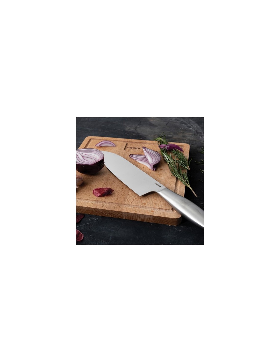 Corta cualquier tipo de alimento con facilidad con los Cuchillos de Cocina Copenhagen de BOSKA, una empresa certificada como B Corporation. Este set de tres cuchillos afilados y esenciales cuenta con un diseño único y está fabricado completamente en acero inoxidable. Son ligeros, aptos para lavavajillas y tienen un mango ergonómico adaptado a diferentes técnicas de corte y tipos de alimentos. ¡Hechos para durar toda la vida! Material : Acero inoxidable Recycled Content Percent : 0 Sin materiales Bisphenol A, Conforme directiva seguridad Alimentos 1935/2004/EC & 2020/1245 Packaging : Caja de regalo All print codes : Laser Engraving 2 - Print code default : Grabado a láser - cuchillo - 40 x 10 mm - max color : 1 Total CO2 emissions : 2,95.