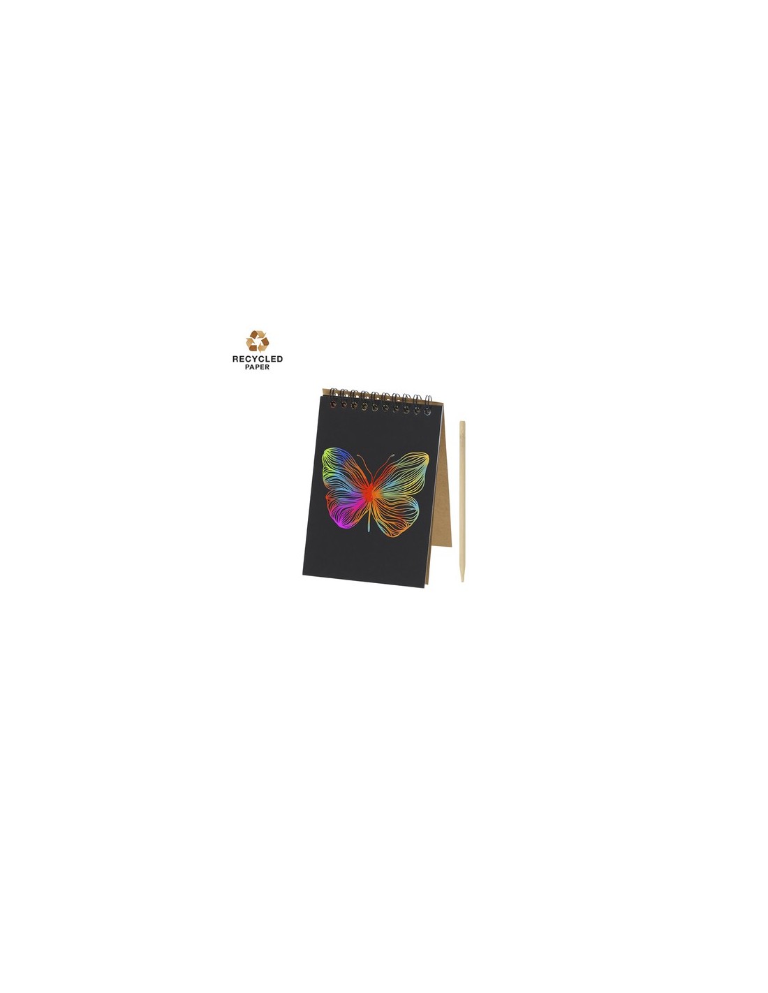 Libreta tipo anillas tamaño A6, con hojas negras mate a una cara ideales para raspar y descubrir colores vibrantes.Incluye 8 hojas, rascador fabricado con una forma compacta y ergonómica para un agarre cómodo que permite dibujar en la superficie negra revelando una gama multicolor vibrante debajo. El Cartón Reciclado proviene del reaprovechamiento de excedente de fabricaciones y reciclaje de papel en el final de su vida útil, convirtiéndose en un lienzo ecológico y sostenible. 8 Hojas. Rascador Bambú Incluido Composition : Cartón Reciclado.