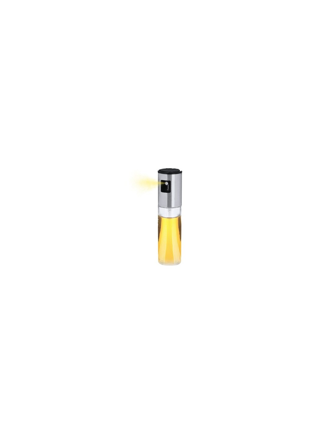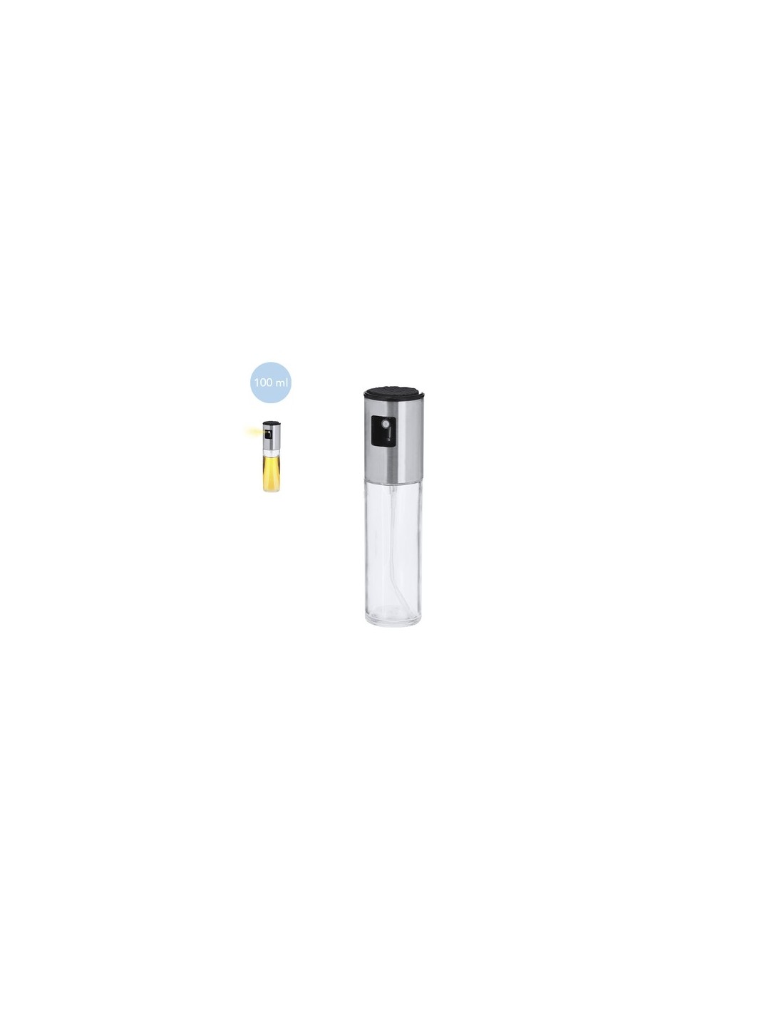 Pulverizador de aceite de cristal y acero inox. Con capacidad de 100 ml y práctico mecanismo pulsador que permite un pulverizado uniforme. 100 ml Composition : Cristal/ Acero Inox.