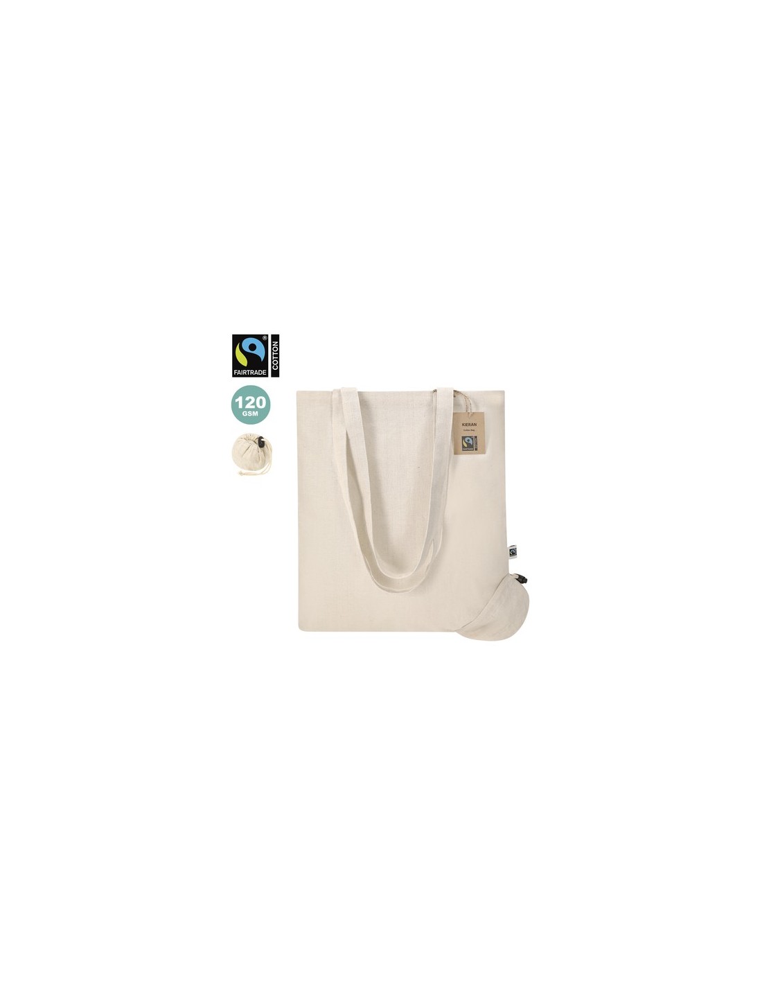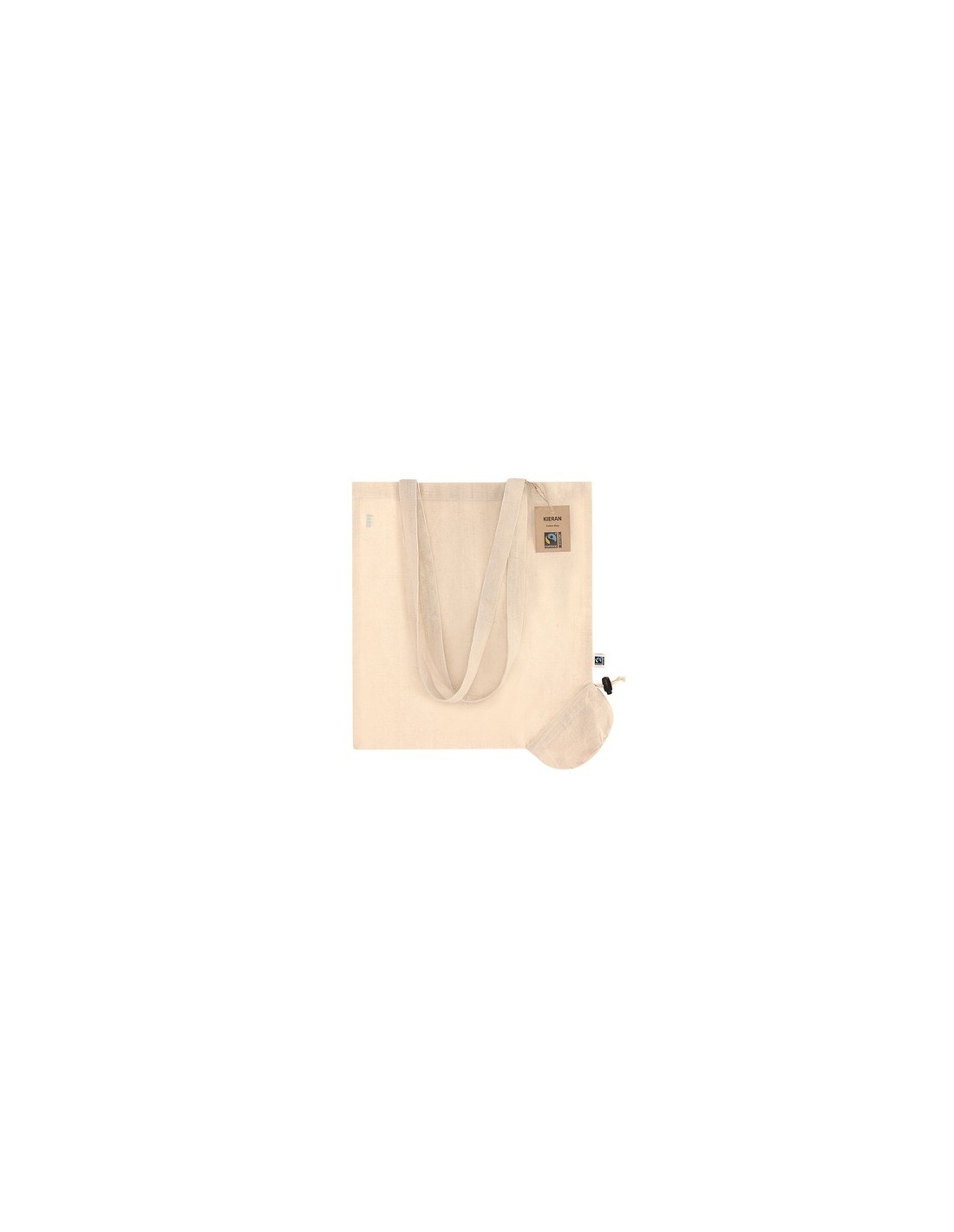 Bolsa plegable confeccionada principalmente en algodón de 120g/m2. Con certificación Fairtrade (Comercio Justo) un sistema comercial solidario y alternativo al convencional que persigue el desarrollo de los pueblos y la lucha contra la pobreza. De acabado cosido, con asas largas de 70cm y resistencia hasta 6kg de peso. Con accesorio de ajuste para fácil plegado. Incluida etiqueta Fairtrade y hangtag distintivo en cartón reciclado. Composition : Algodón 120 g/ m2.