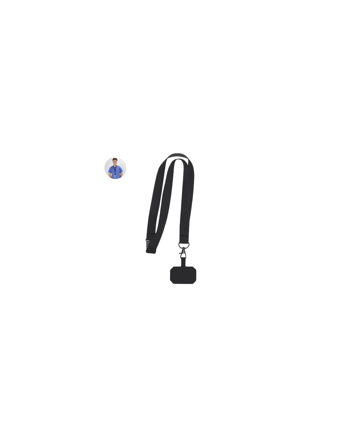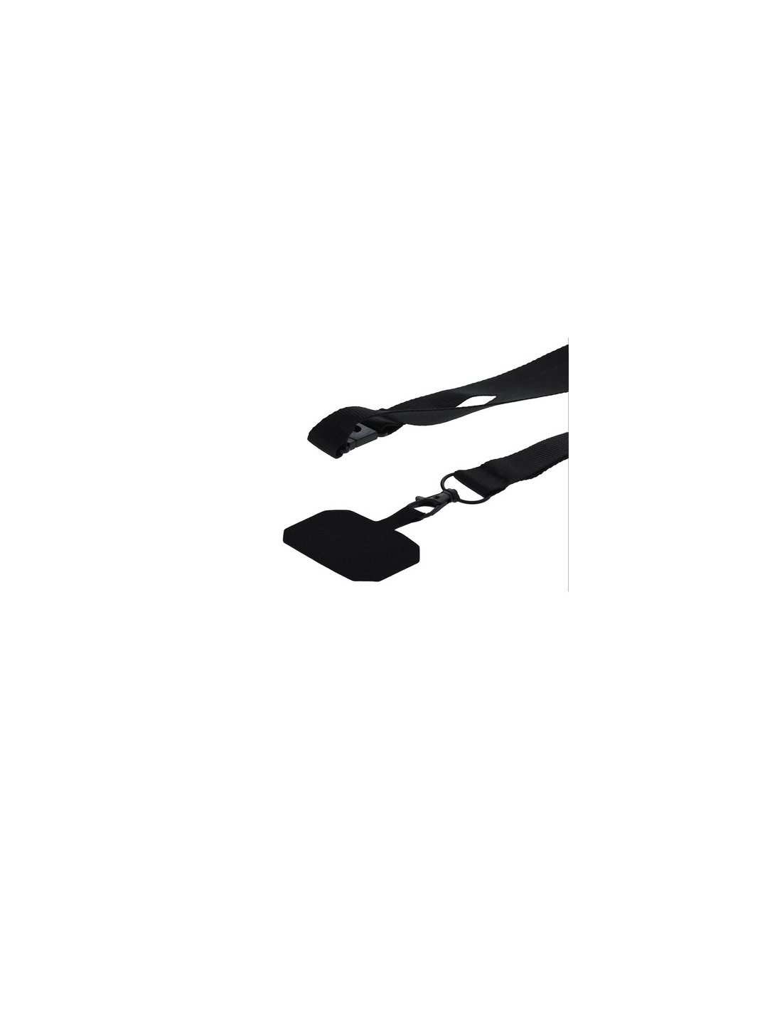 Original lanyard soporte en suave poliéster, adaptable por el accesorio de transporte para situar entre la funda y el smartphone. Cinta de transporte a juego, mosquetón metálico giratorio en color negro y dispone de accesorio de seguridad en el cuello. Composition : Poliéster.