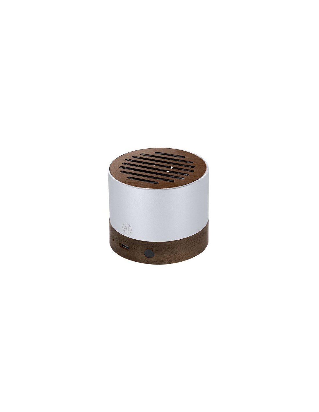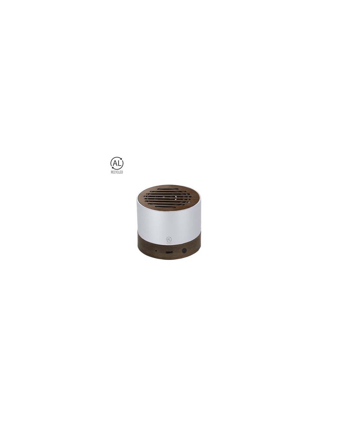 Altavoz fabricado en aluminio reciclado con madera de nogal. Con conexión Bluetooth 5.3 y 3W de potencia. Incluye distintivo Aluminio Reciclado en carcasa. El Aluminio Reciclado es un material con posibilidades de reciclaje casi infinitas, sin perder sus propiedades originales y consumiendo menos energía en este proceso.Elaborado con elementos vegetales para así fomentar la utilización de materias primas naturales y reducir las emisiones contaminantes.Certificación GRS (Global Recycled Standard / Estándar de Reciclaje Global), que garantiza el origen reciclado del material usado para fabricar el producto. Conexión Bluetooth. Potencia Sonido 3W. Batería 300 mAh Composition : Aluminio Reciclado/ Madera.