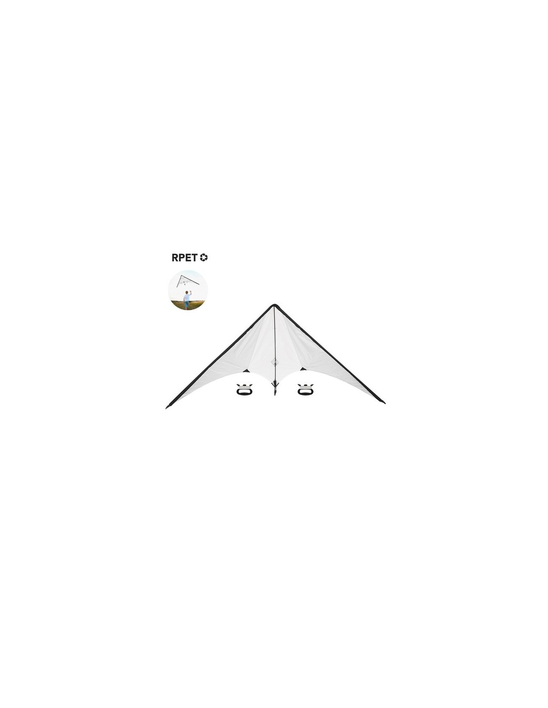 Cometa con diseño Delta fabricada en resistente poliéster RPET Ripstop 210T. Con estructura de fibra de vidrio que aporta estabilidad y facilidad de montaje. Incluye 2 asas de plástico con hilo para un manejo versátil y un control preciso durante el vuelo. Incluye práctica funda RPET de transporte con asa, perfecta para llevarla cómodamente a cualquier lugar. El material RPET se elabora a partir de plástico reciclado, para así fomentar la reutilización de residuos plásticos y ayudar a la sostenibilidad del planeta. Funda Ripstop RPET Composition : Ripstop RPET.