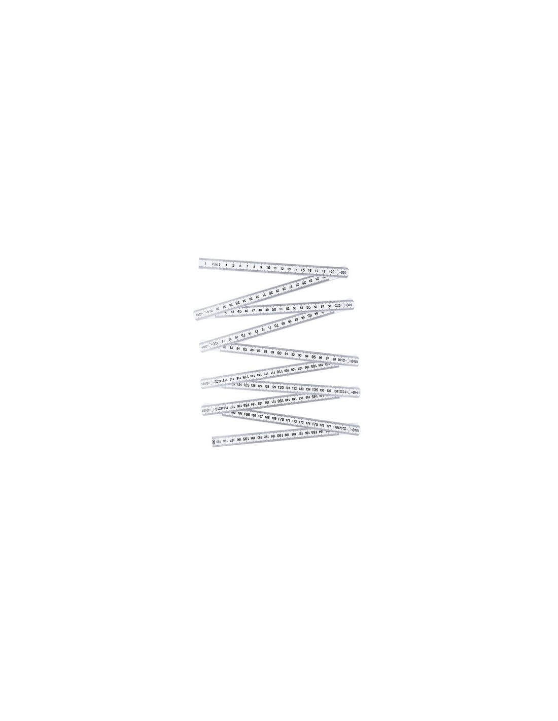 Regla plegable de 2 metros en resistente fibra de vidrio. Con escala en centímetros de color negro visible por ambas caras. Con posiciones posiciones ajustables a 90º, 180º y 270º para mayor versatilidad. 2 M. Plegable Composition : Fibra de Vidrio.